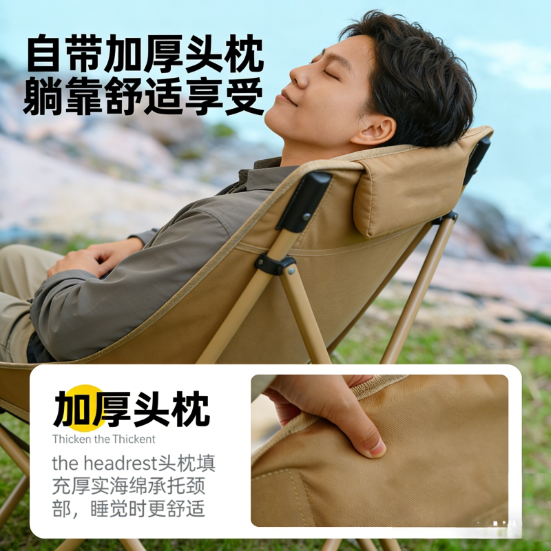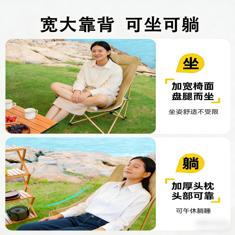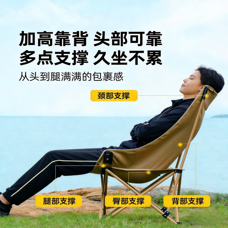 高背户外折叠椅月亮椅露营椅子便携式躺椅沙滩钓鱼椅凳野餐桌椅厚