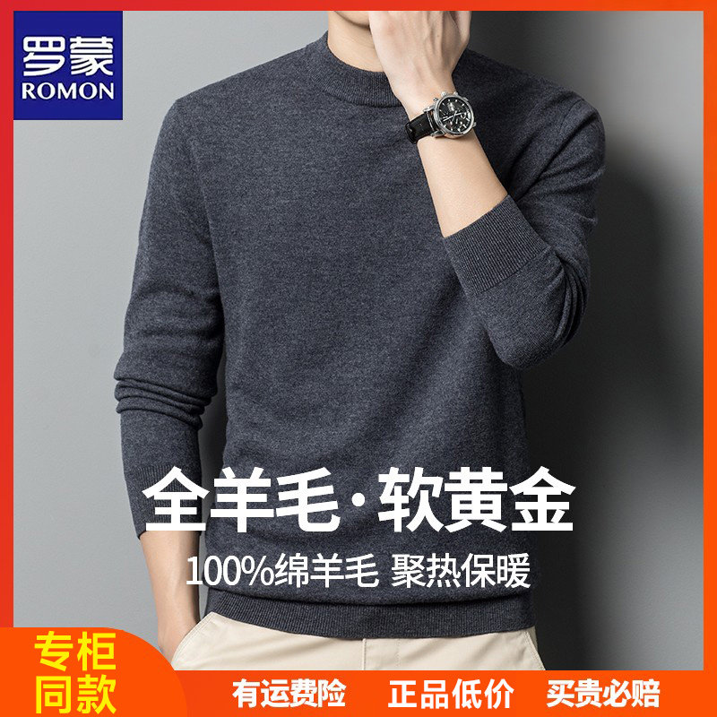 【100%精纺绵羊毛】罗蒙2025秋冬新款毛衣打底衫纯羊毛针织衫男士