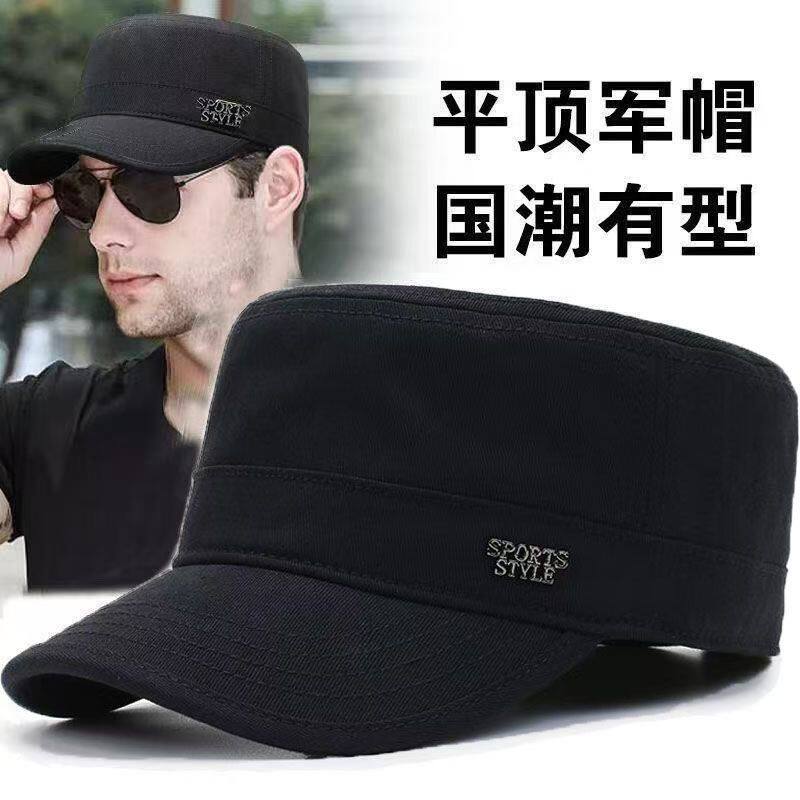 春秋四季平顶调节新款鸭舌帽男士中老年棉休闲出游帽子刺绣帽子
