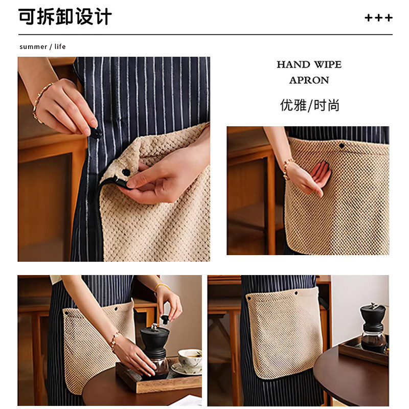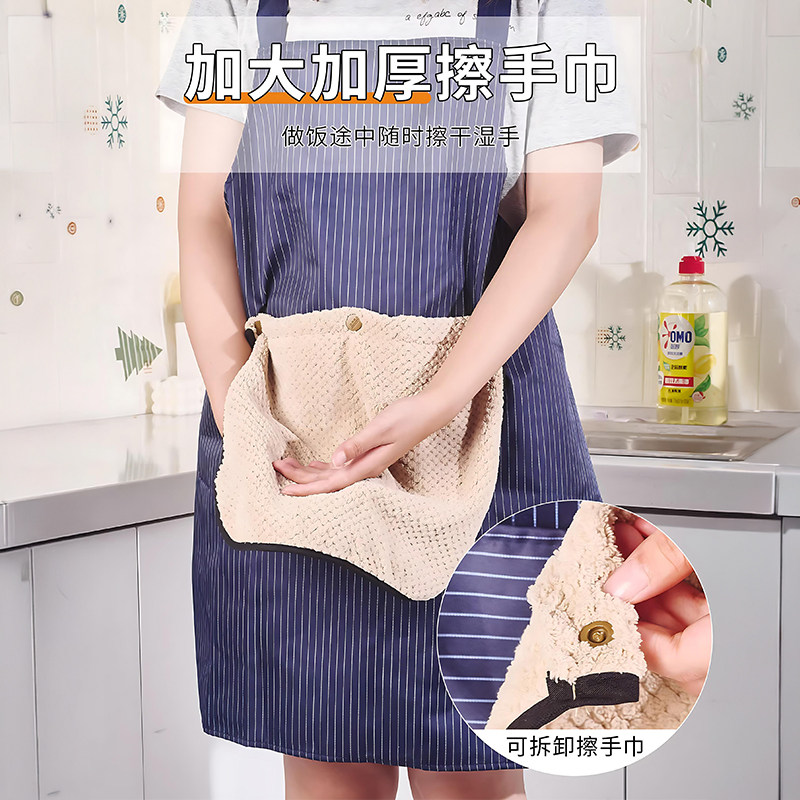 做饭加厚帆布厨房围裙家用防水防油工作服女围腰餐饮可拆卸擦手巾