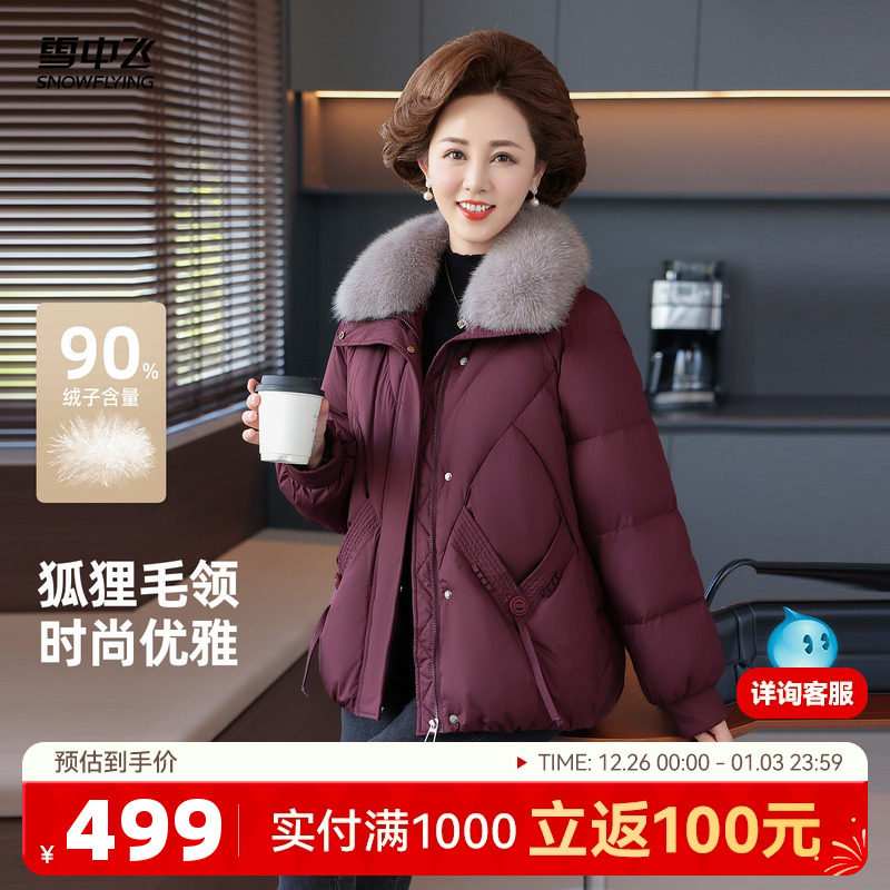 雪中飞2025冬新款女士短款羽绒服时尚狐狸毛领精致休闲妈妈装保暖