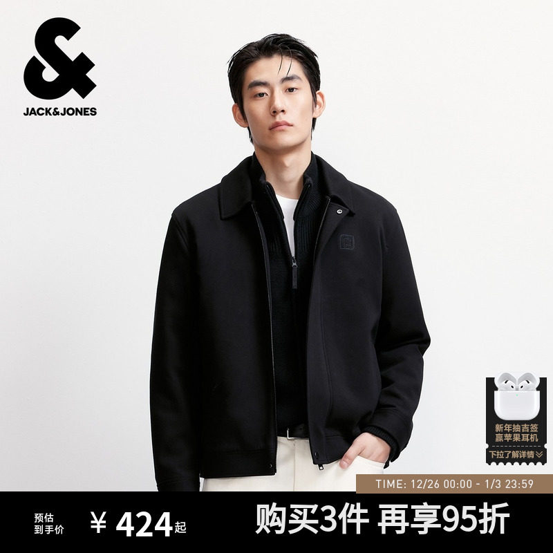 杰克琼斯行政夹克男士秋季新款翻领黑色休闲商务外套短款上衣男装