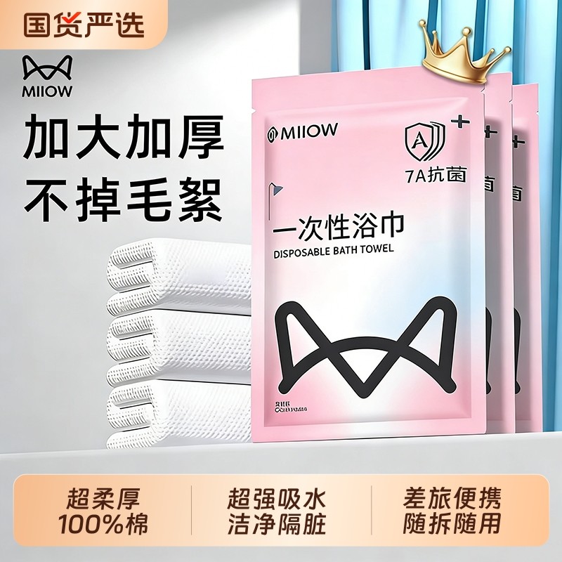 猫人一次性浴巾旅行便携单独包装纯棉压缩毛巾干加大加厚酒店用品