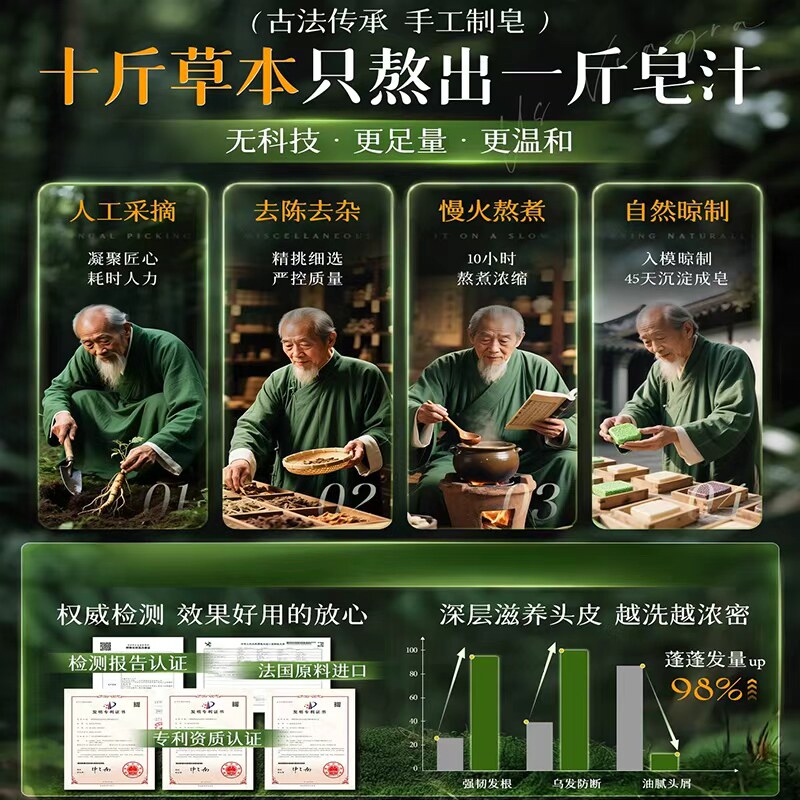 侧柏叶洗发皂何首乌去屑手工植物乌斯曼草洗头膏养发草本古法清洁