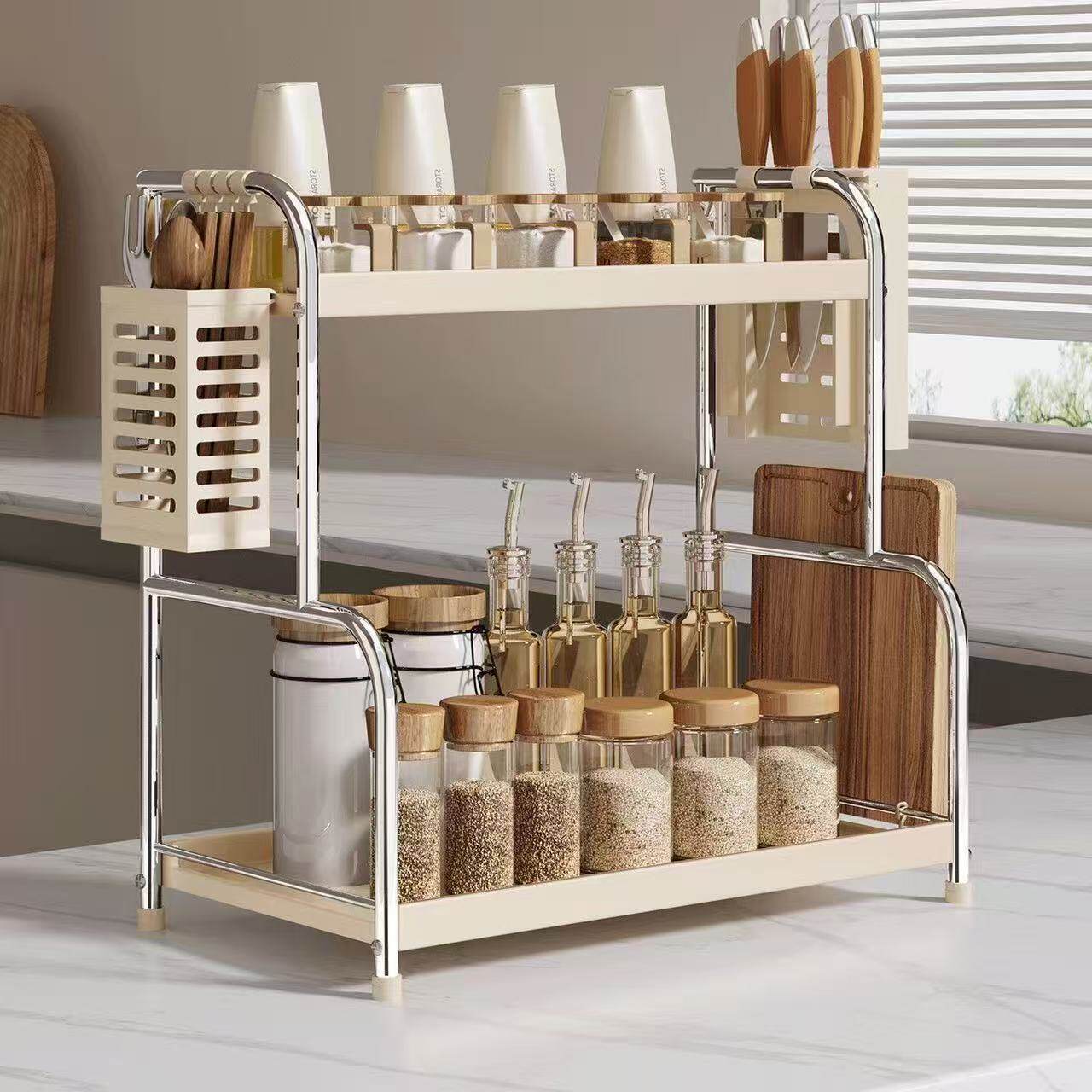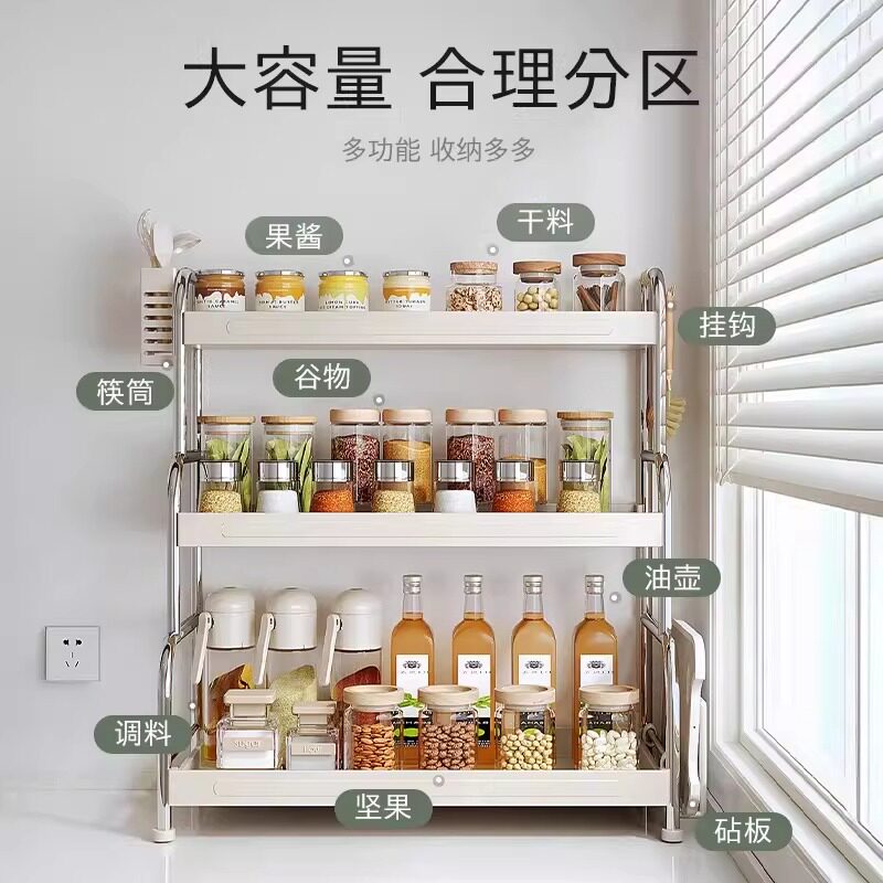 厨房置物架置物架多功能调料品架厨房盐调味罐收纳盒台面调料架子