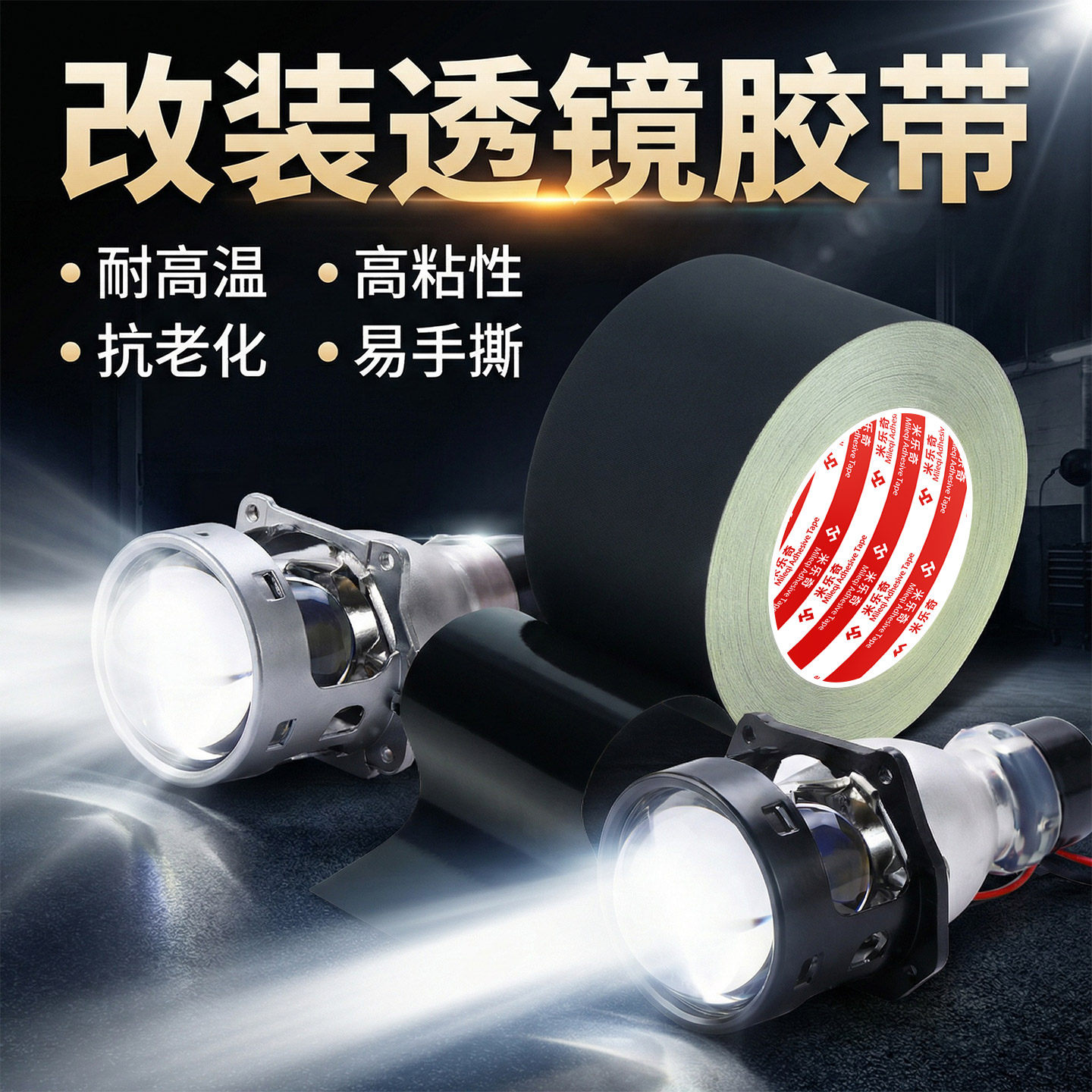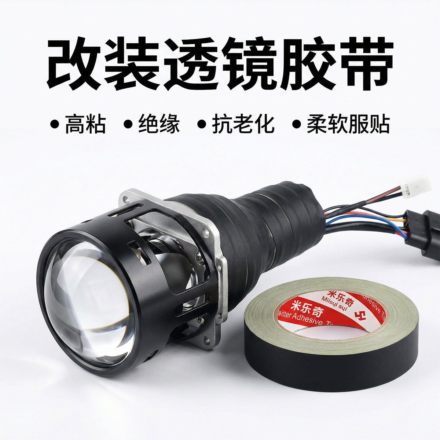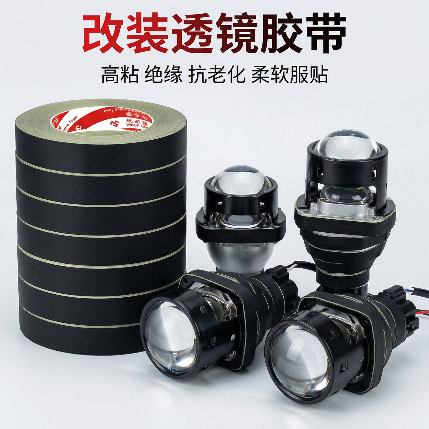 透镜改装专用密封包扎胶布摄影灯光线材线束缠绕防老化绝缘醋酸胶布耐高温汽车灯内饰维修安装防漏电修复配件