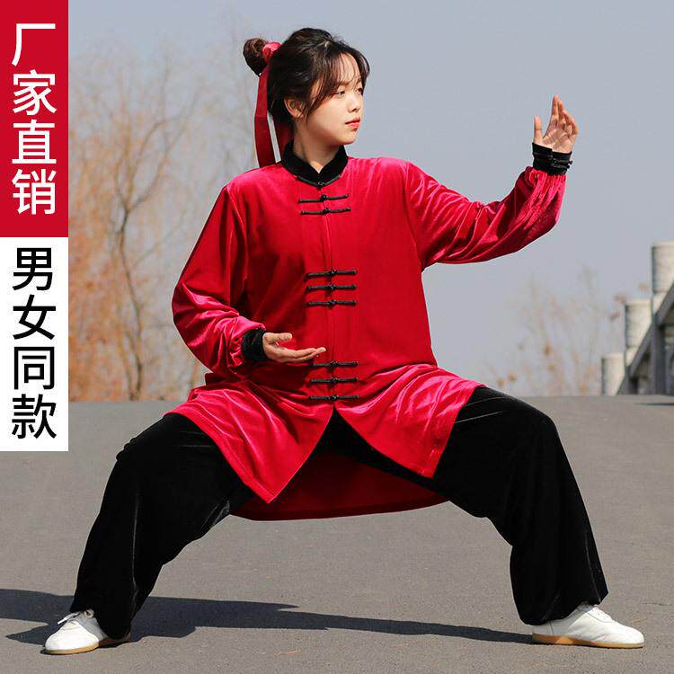 太极服秋冬南韩绒太极拳男女套装新款晨练功服保暖中长款武术服装