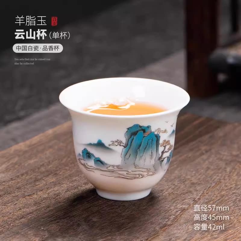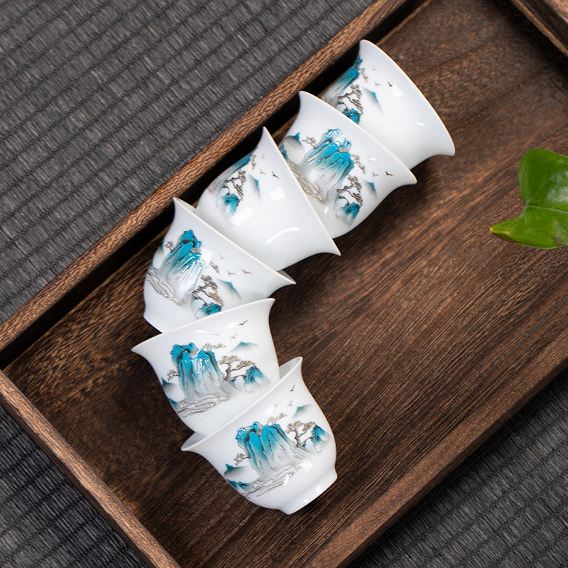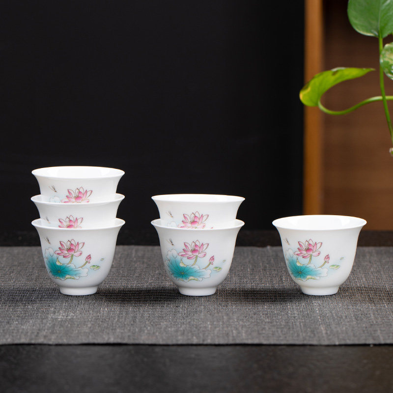 白瓷单杯6只羊脂玉功夫茶杯六只陶瓷小茶杯家用待客喝茶专用客杯