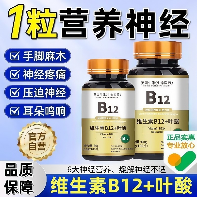 维生素b12100片和叶酸营养甲钴胺修复神经正品官方旗舰店膳食健康