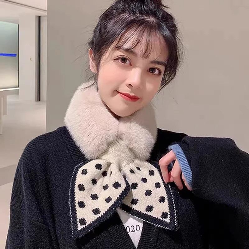 毛绒围巾女款2025新款冬韩系氛围感可爱百搭保暖交叉毛领围脖护颈