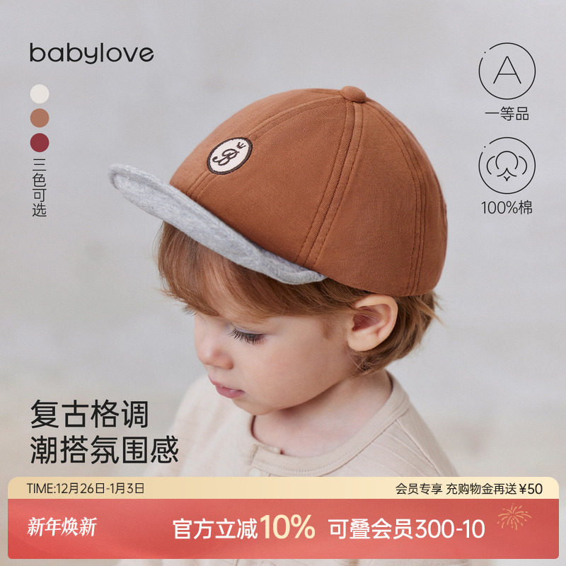 babylove婴儿帽子春秋纯棉鸭舌帽宝宝软檐帽百搭户外运动棒球帽子