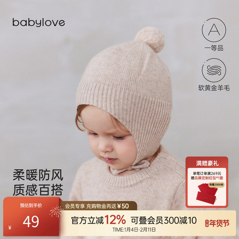 babylove宝宝毛线帽秋冬羊毛保暖包头帽可爱针织防风帽婴幼儿帽子