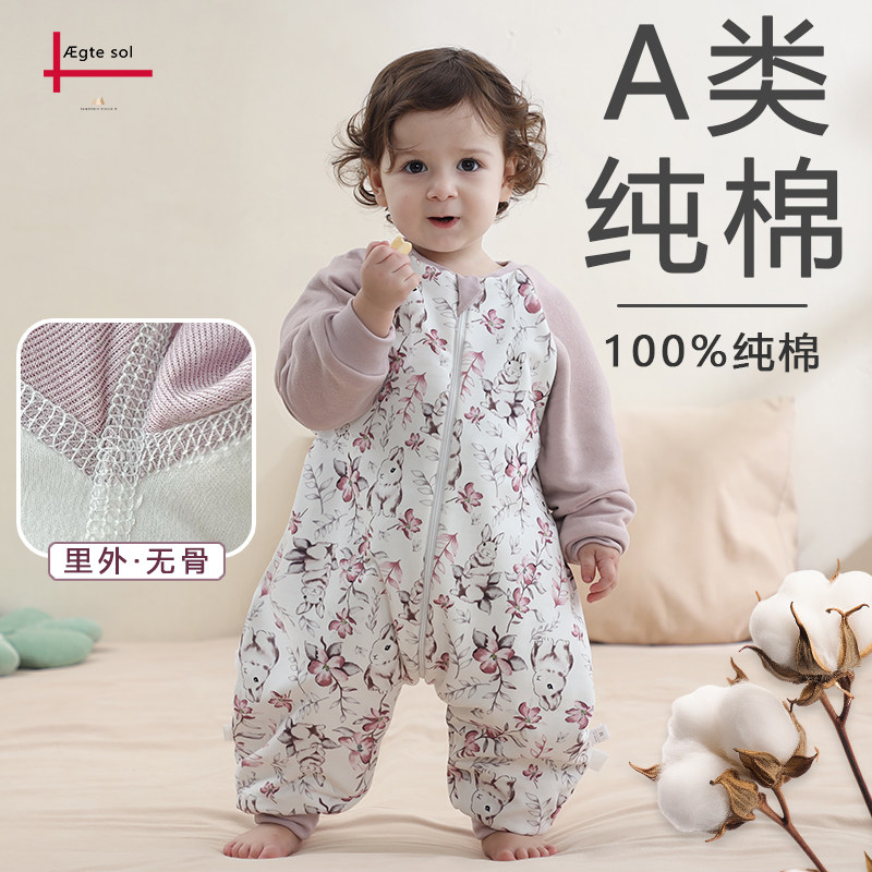 AEgtesol婴幼儿纯棉分腿睡袋儿童秋冬恒温防踢被宝宝连体家居睡衣