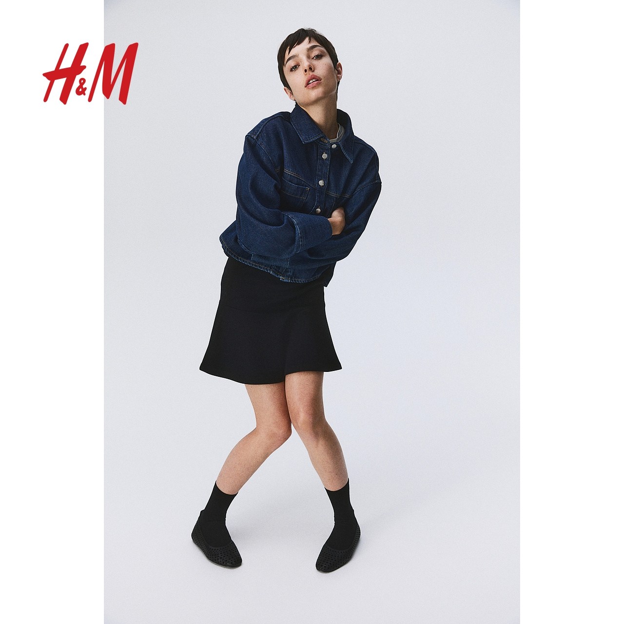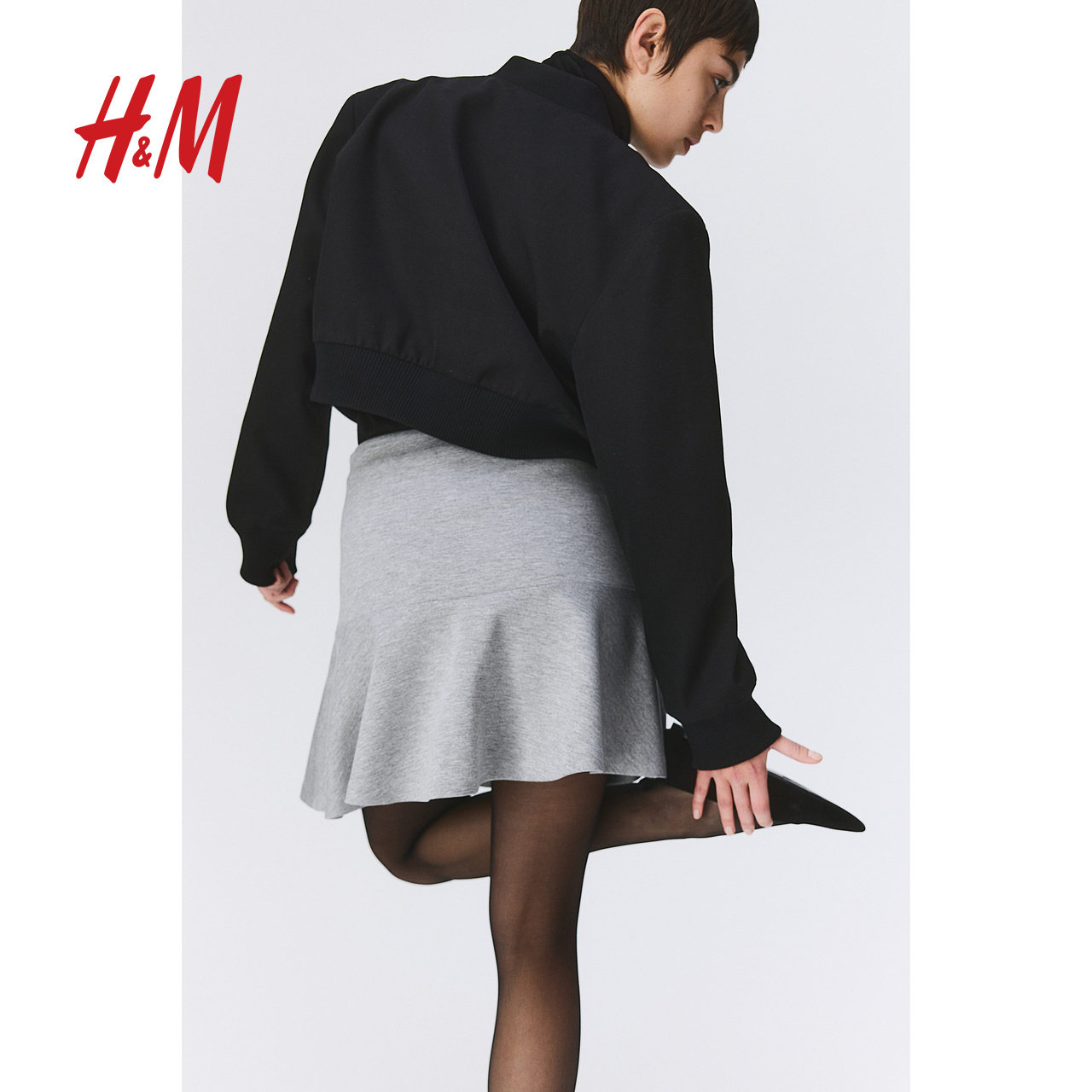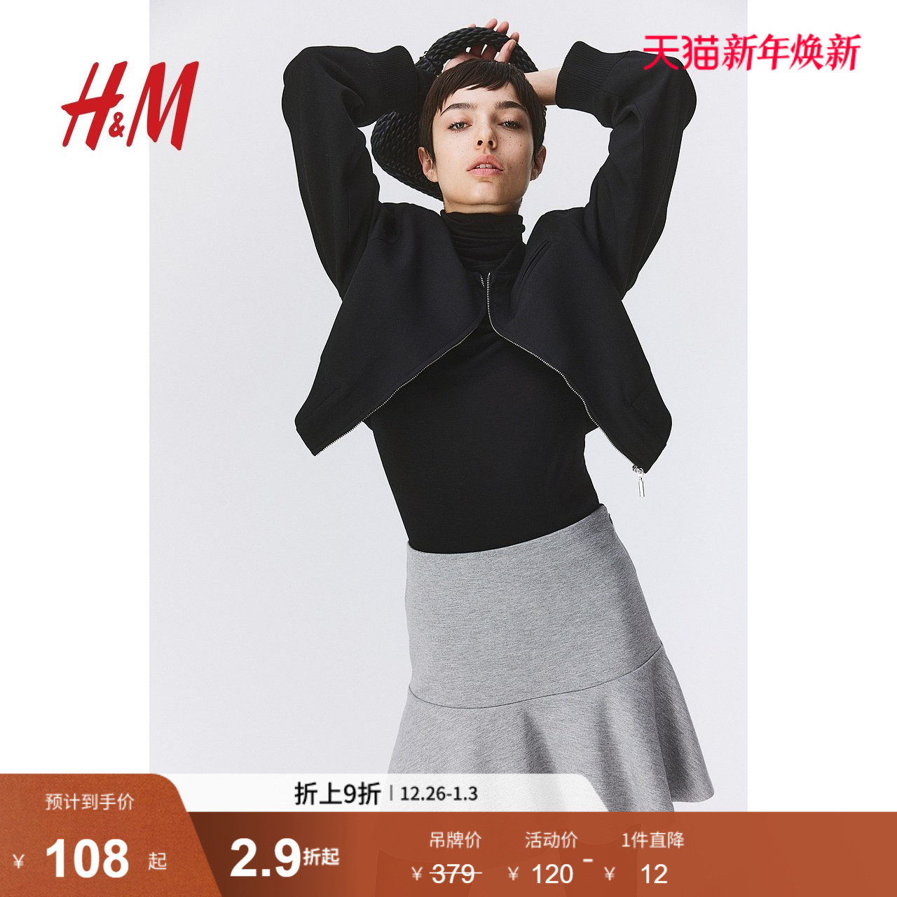 HM女装半身裙秋季重磅修身高腰迷你喇叭半身短裙1232609