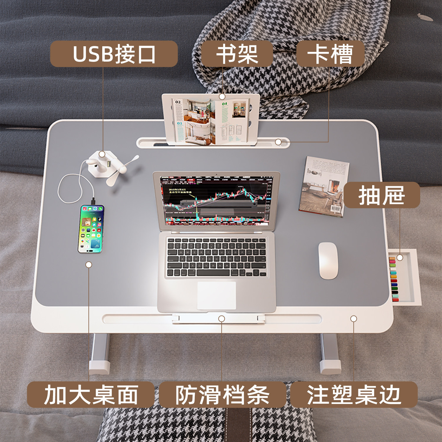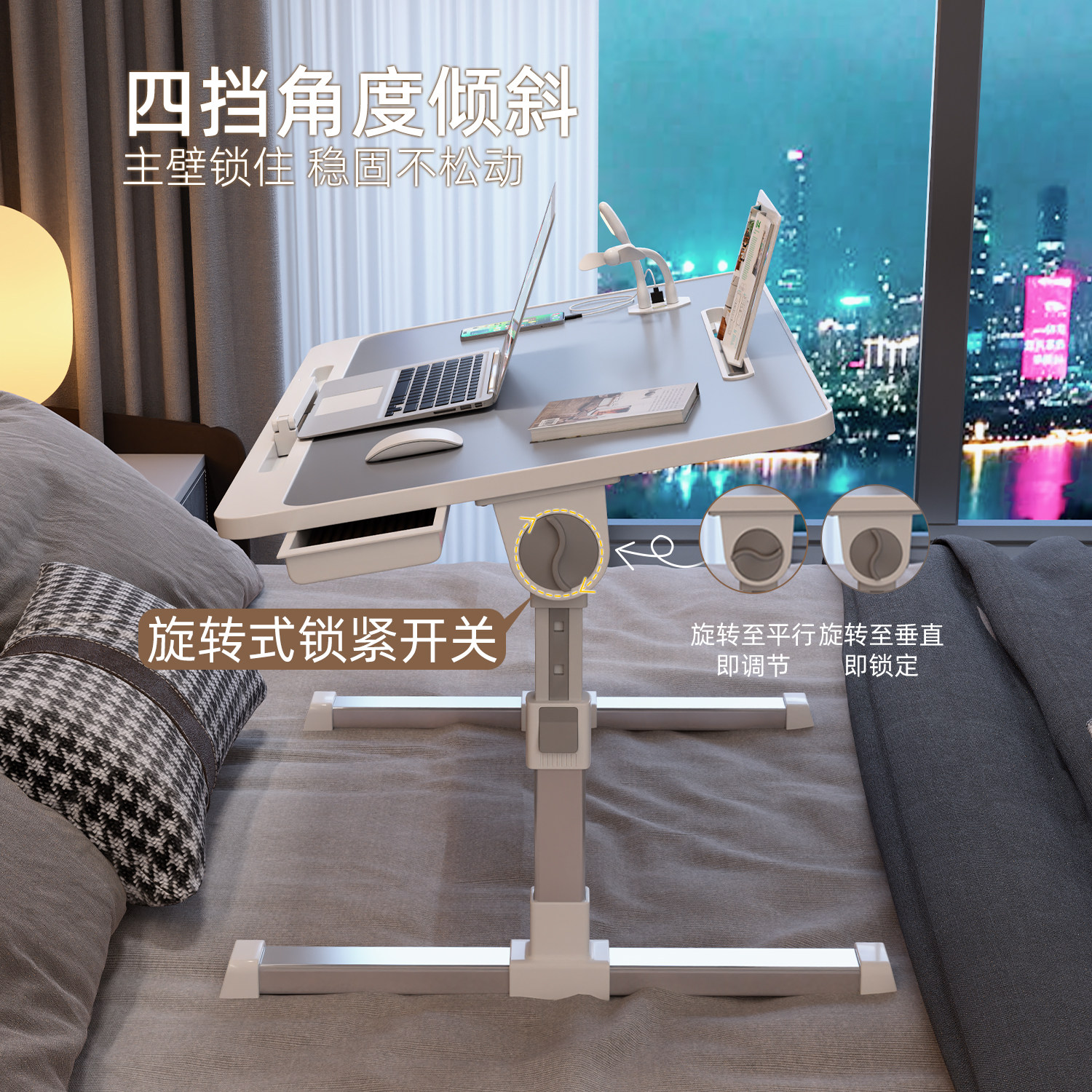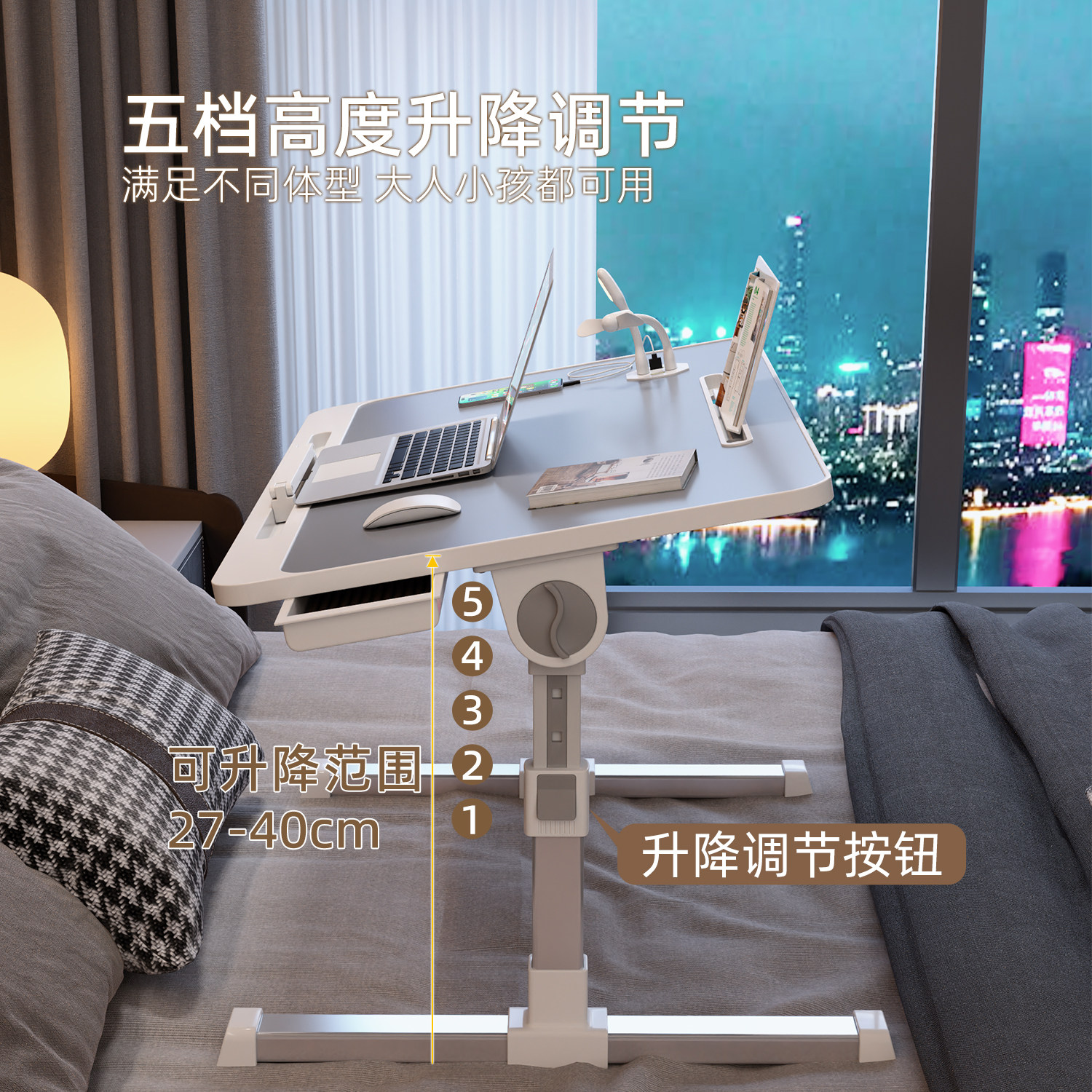 可升降折叠床上小桌子简约宿舍学生写字床上书桌学习调节高度支架家用卧室坐地飘窗懒人笔记本电脑办公小桌板