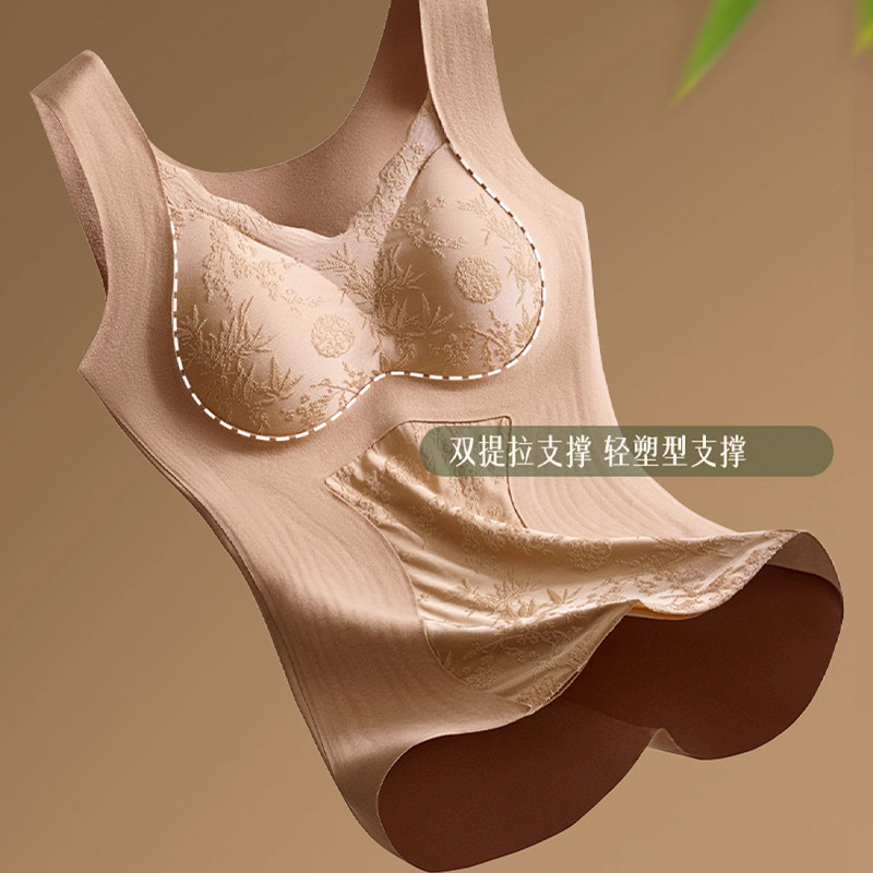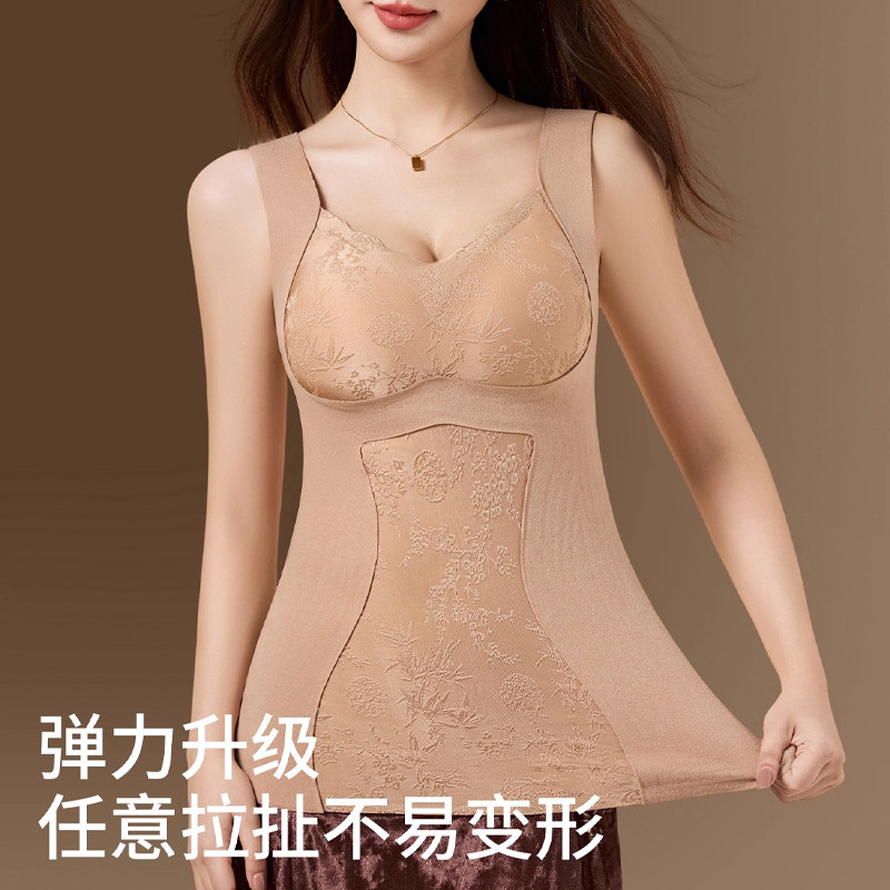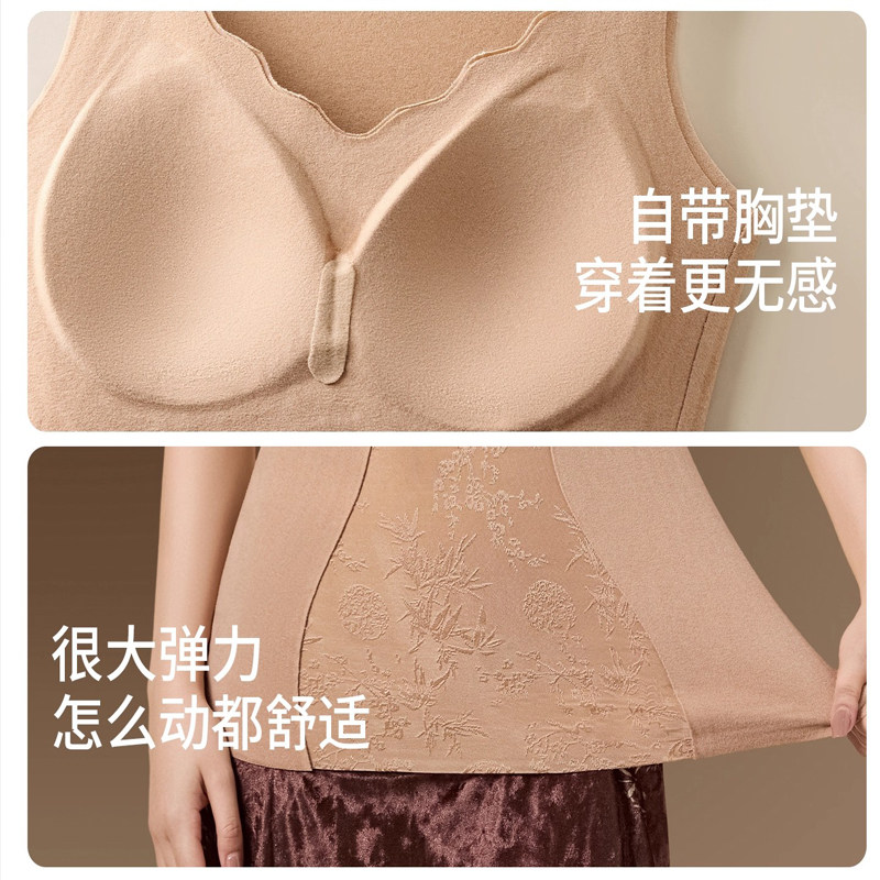 保暖背心免穿文胸打底自带胸垫塑身背心秋冬发热女士无痕收腹美体