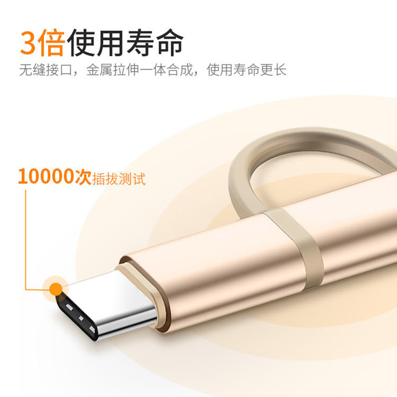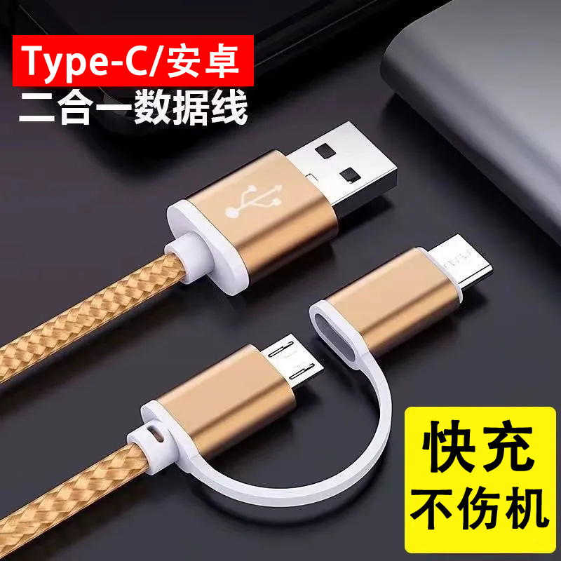 艾胜者 二合一数据线一拖二快充电线加长Type-C适用于华为荣耀vivo小米魅族oppo三星安卓micro USB手机通用