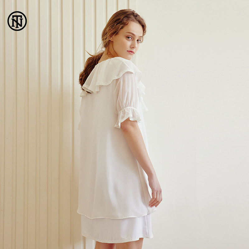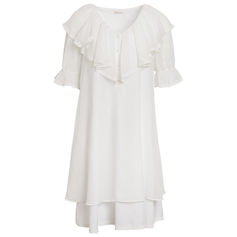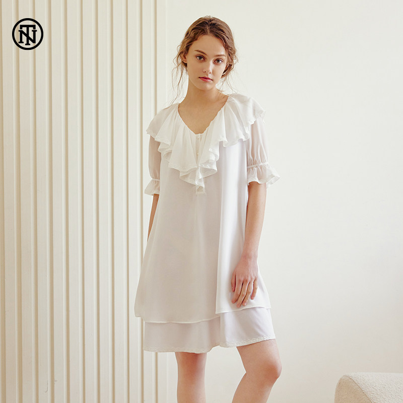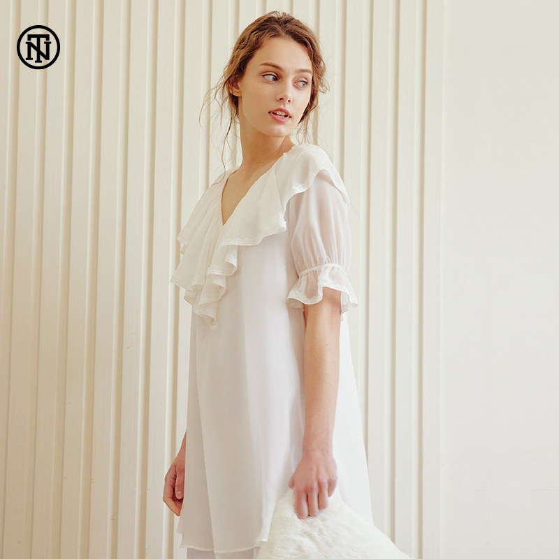 NoirTease奈黎诗春夏薄款性感睡裙女士纯欲短袖荷叶领打底吊带裙