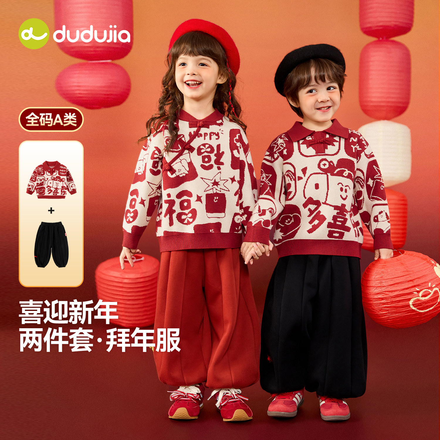 嘟嘟家儿童新年唐装男童中国风拜年服套装宝宝周岁礼服女童演出服
