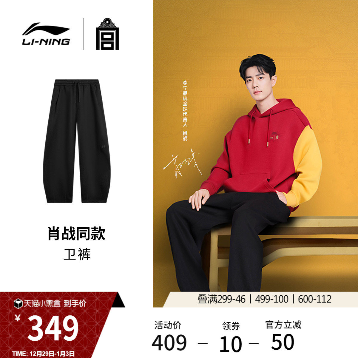 【肖战同款】李宁中国文化系列故宫联名卫裤男女同款冬休闲运动裤
