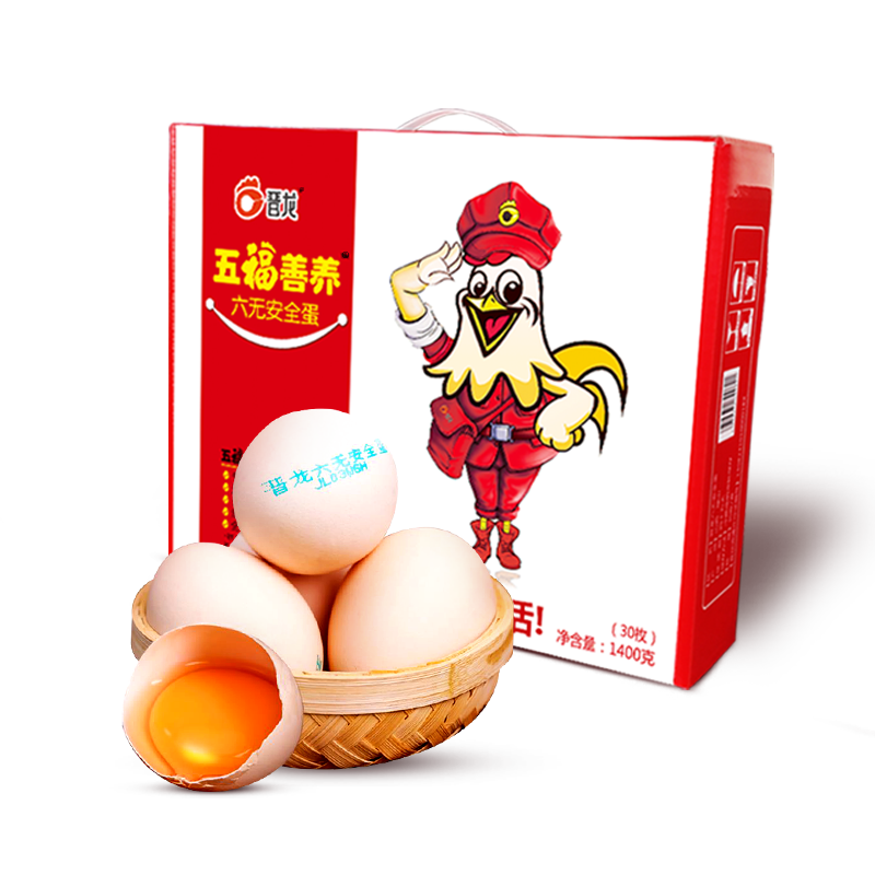 晋龙六无五福无抗鲜鸡蛋30枚1.4KG 鲜鸡蛋无激素安全新鲜营养盒装