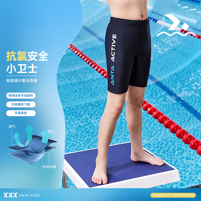 安踏儿童泳裤男童纯色泳裤速干抗菌防晒泳装中大童温泉泳池泳衣