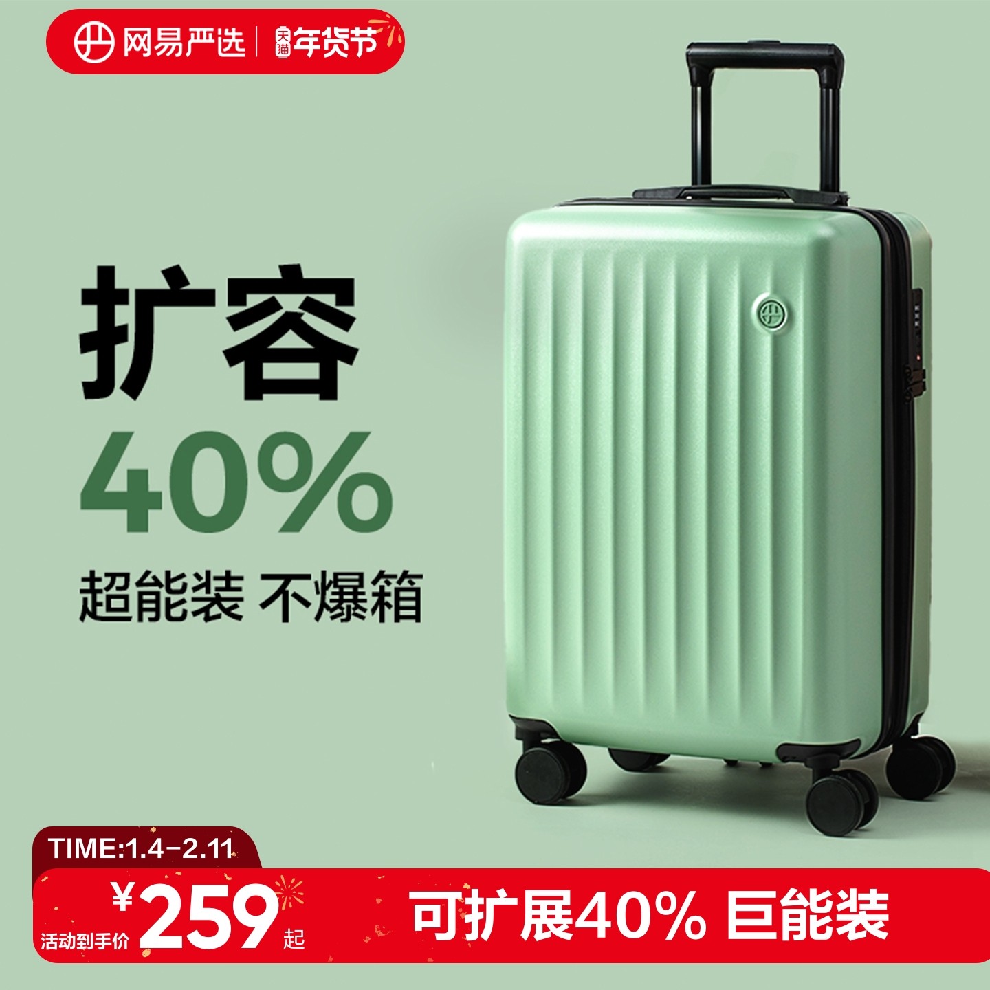 网易严选行李箱女可扩展拉杆箱20寸登机箱大容量静音皮箱旅行箱子