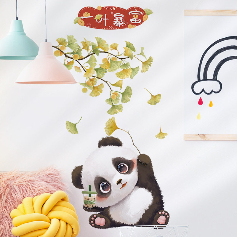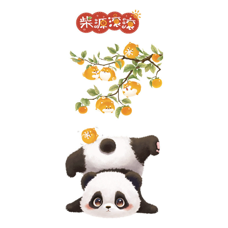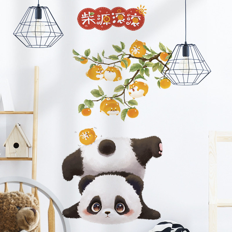 可爱熊猫背景墙装饰贴画儿童房玻璃美化墙贴中国风文字可移墙贴画