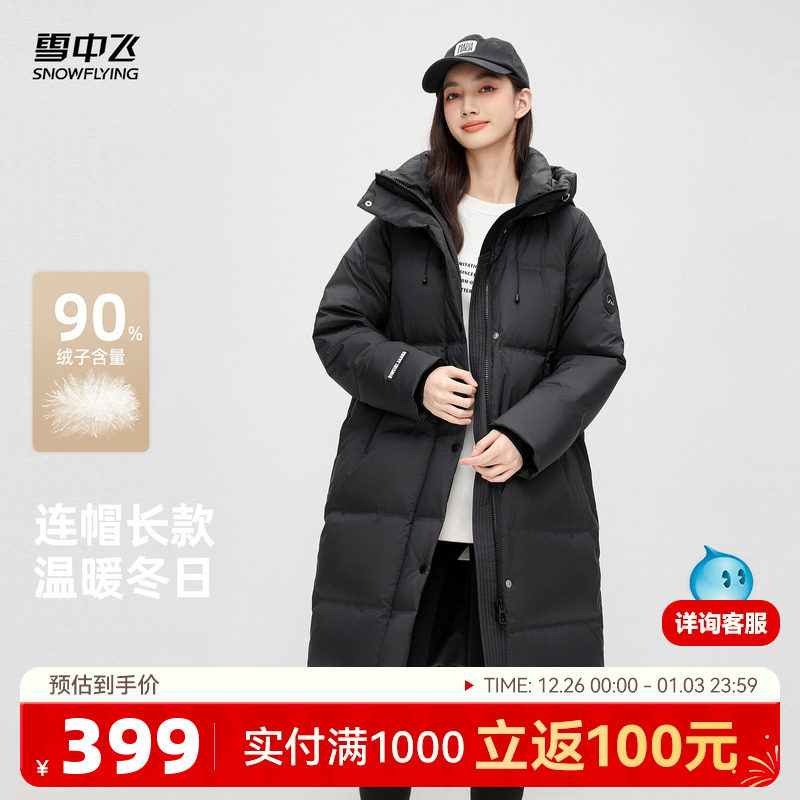 雪中飞2025冬新款女士中长款羽绒服连帽加厚保暖韩版廓形纯色