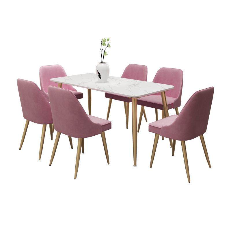 北欧铁艺大理石餐桌 简约网红餐厅餐桌椅 奶茶店长方形餐桌椅组合