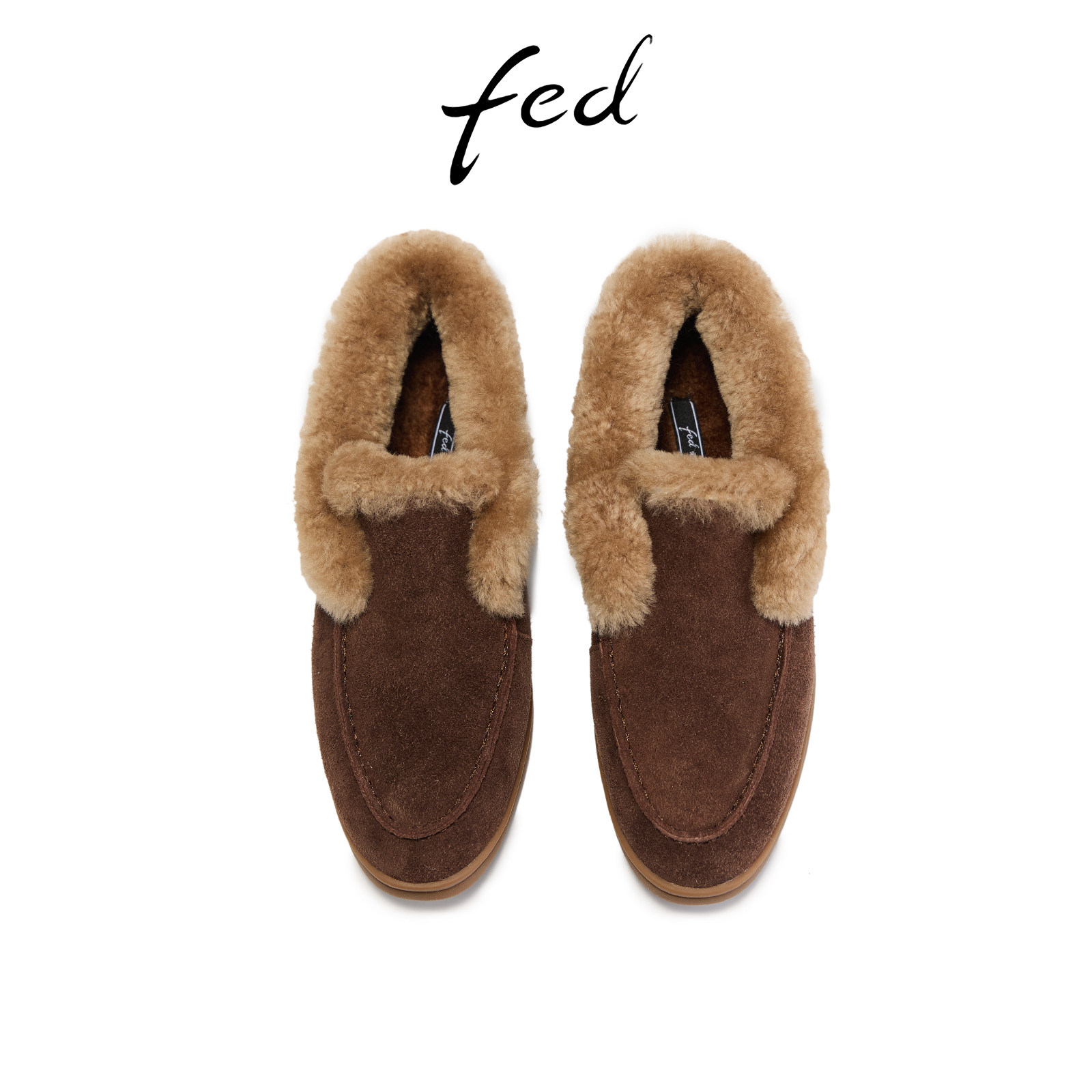 fed加厚棉鞋冬季新款女鞋一脚蹬乐福鞋软底单鞋女款S1217-ZC757