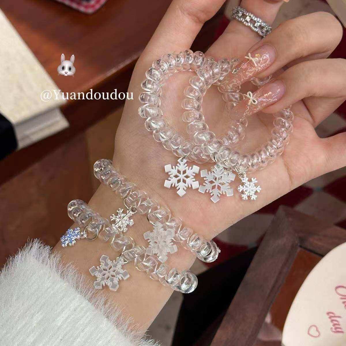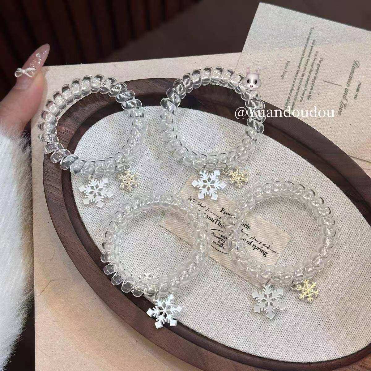 雪花吊坠甜美电话线发圈简约头绳无痕清新百搭日常高弹力发饰