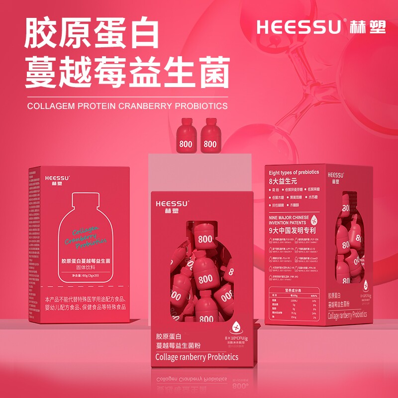 赫塑胶原蛋白蔓越莓益生菌800亿/瓶活性菌小红瓶天然食补粉粉食品