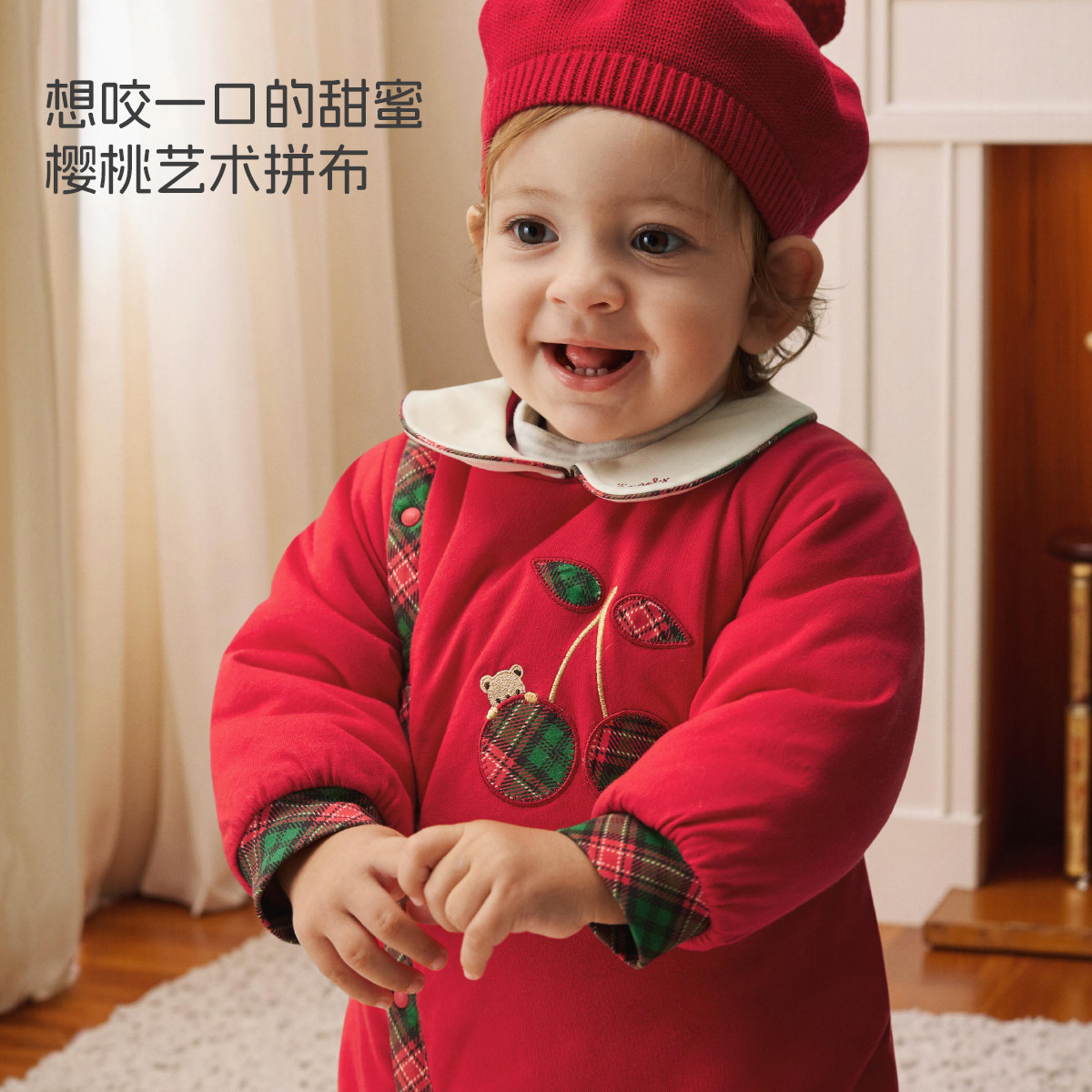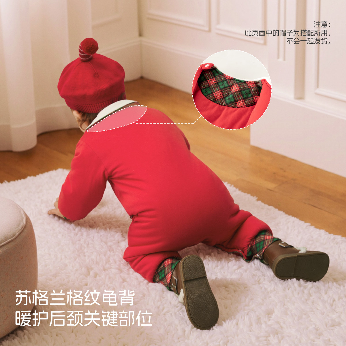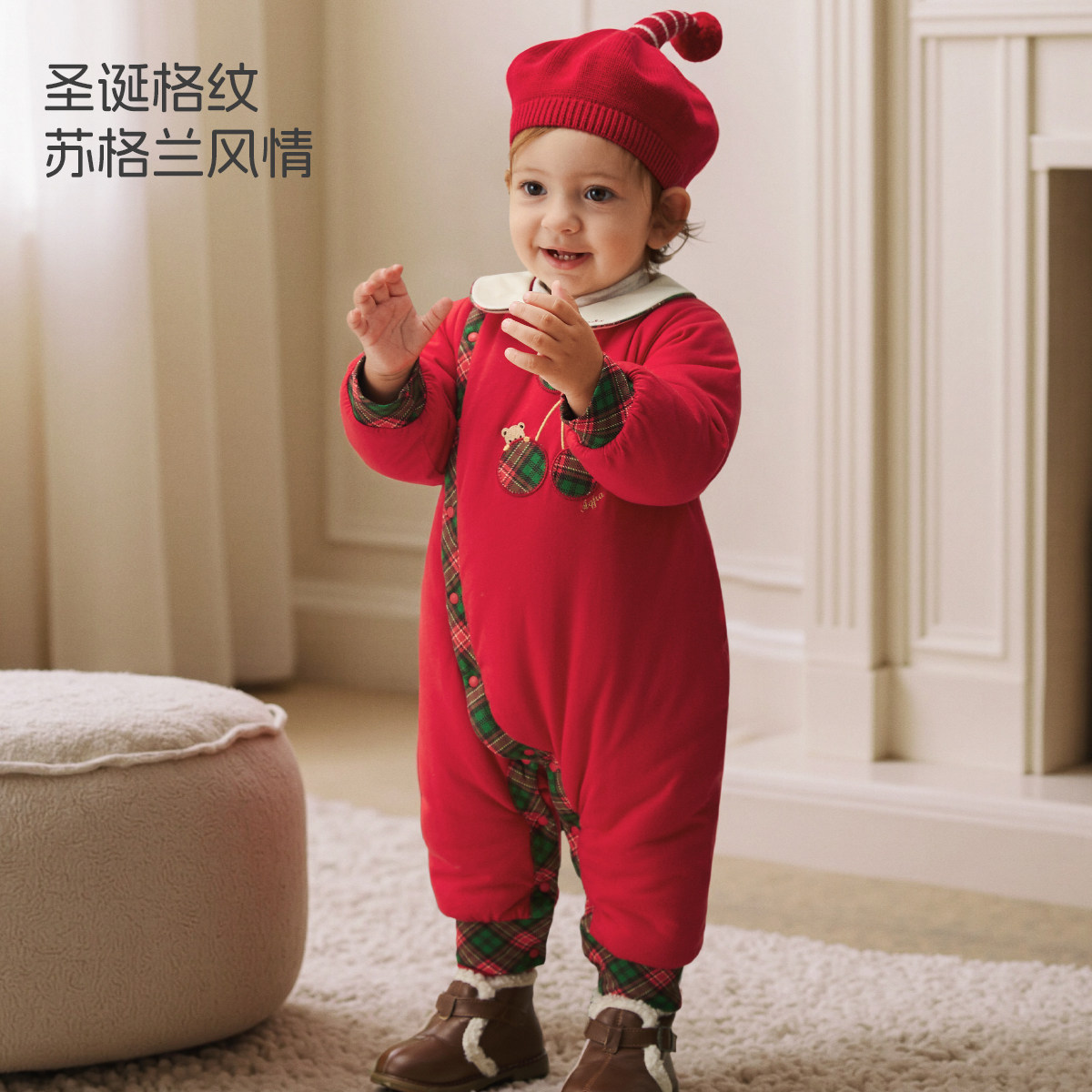 [樱姿丹华]aqpa爱帕婴儿夹棉连体衣新年红拜年服冬季保暖加厚棉服