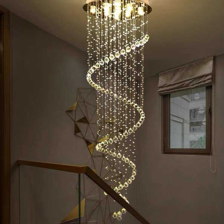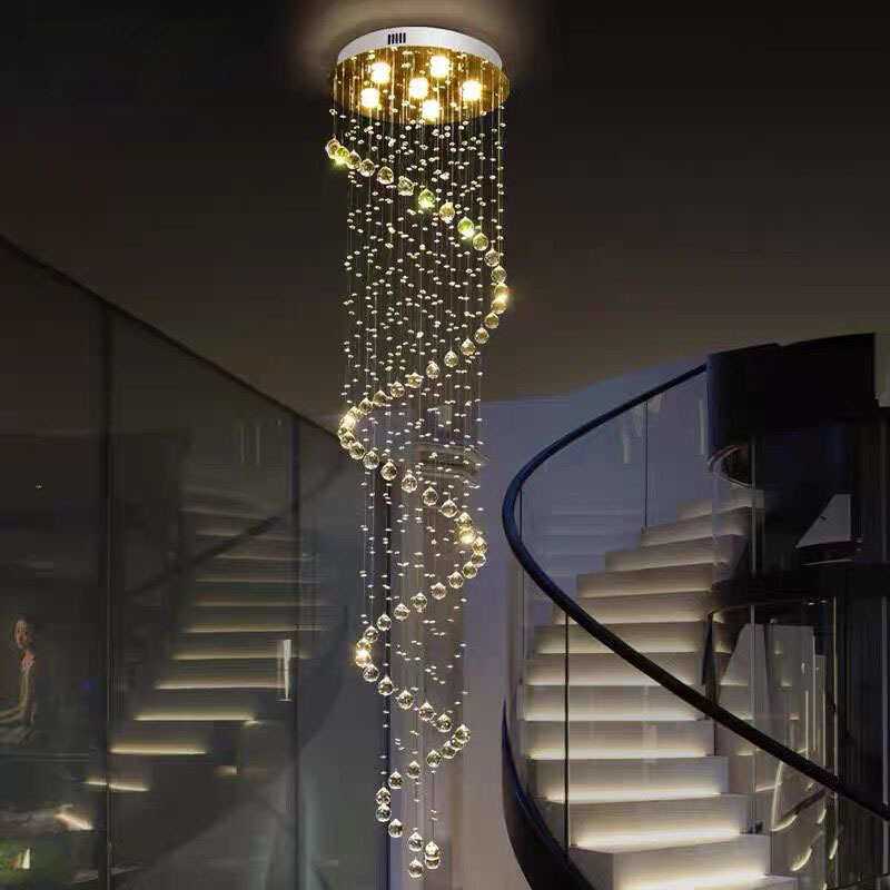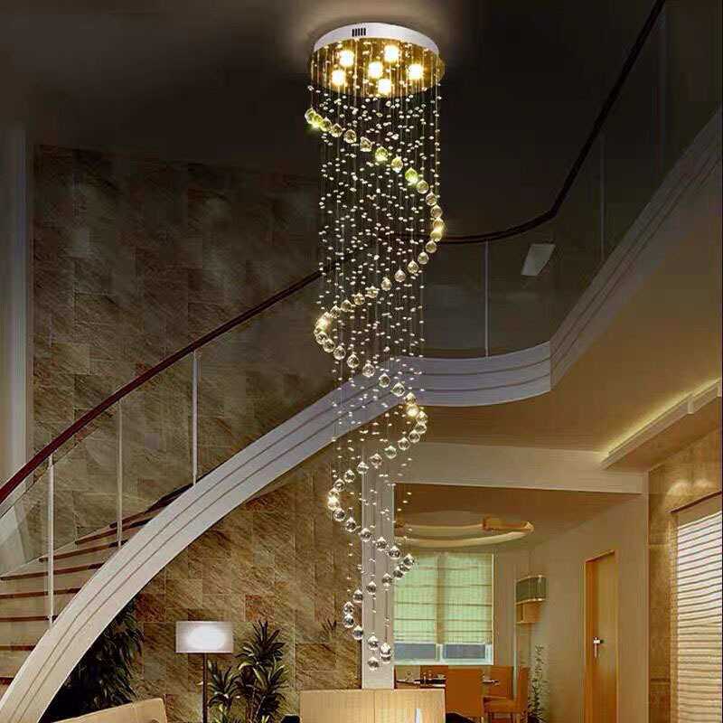 欧式楼梯长吊灯别墅灯水晶吊线灯复式楼客厅螺旋灯玻璃浪漫装饰灯