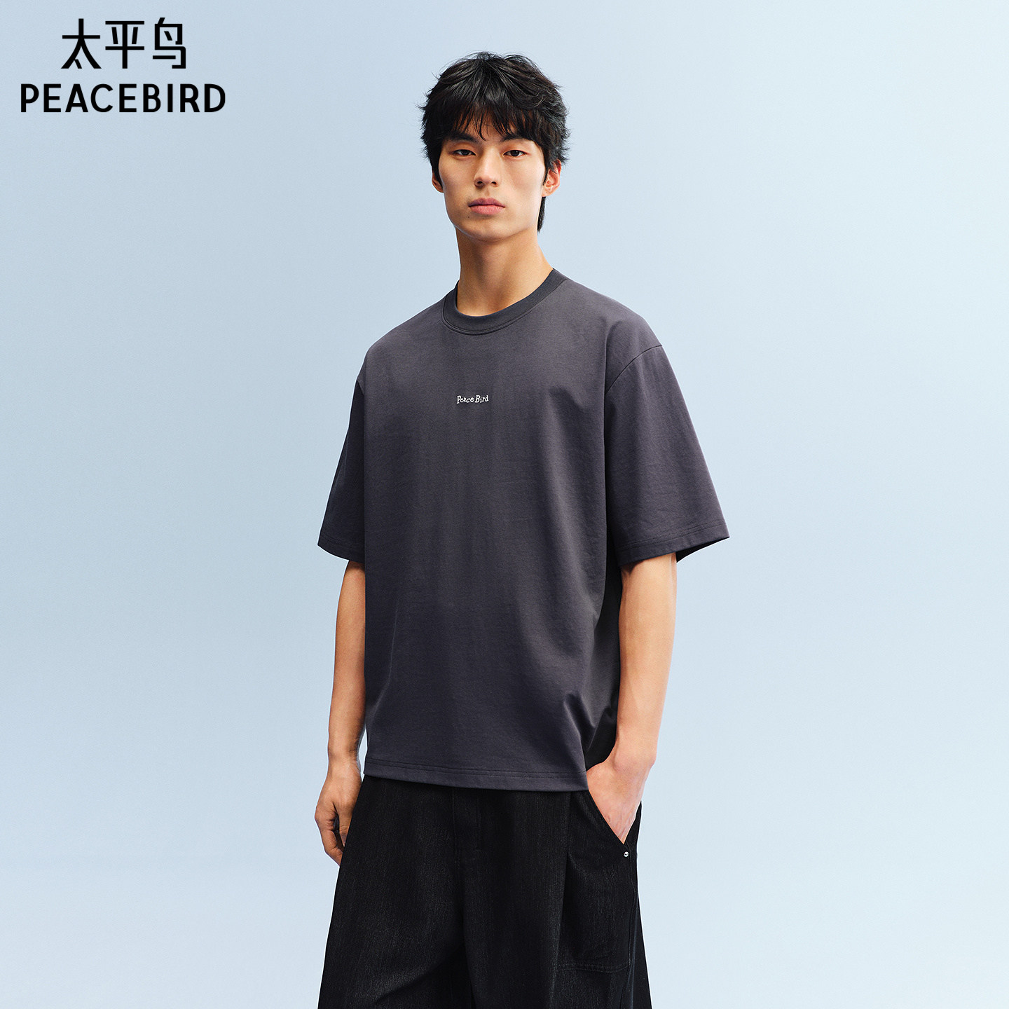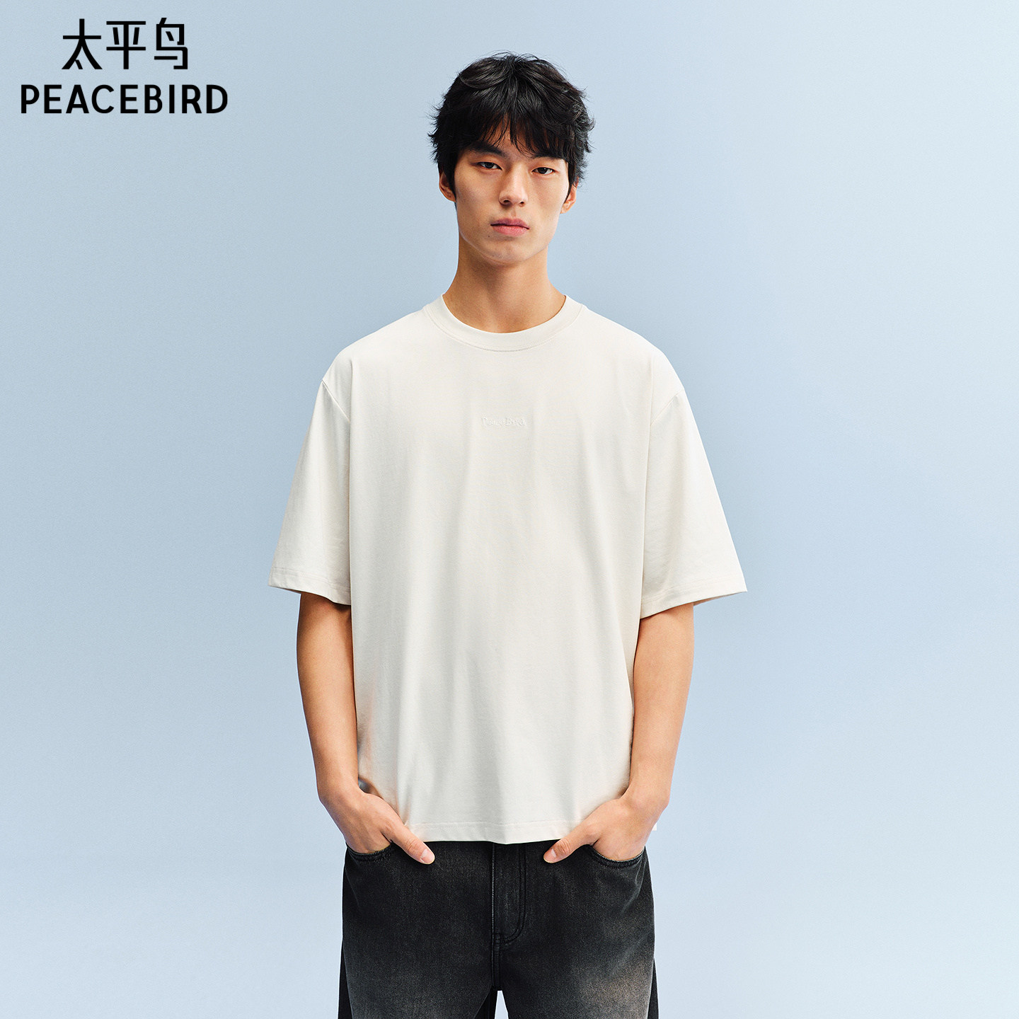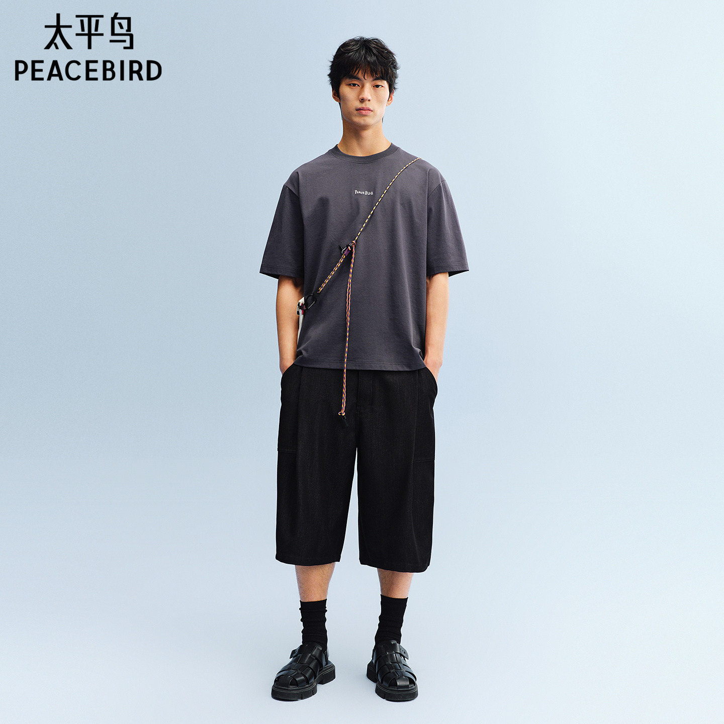 太平鸟男装圆领解构式短袖T恤2026夏新款潮流宽松半袖刺绣体恤衫