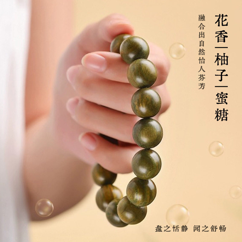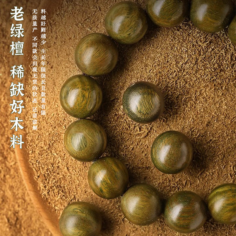 天然老料绿檀木手串女款静心盘玩佛珠檀香木质男款绿檀文玩手链