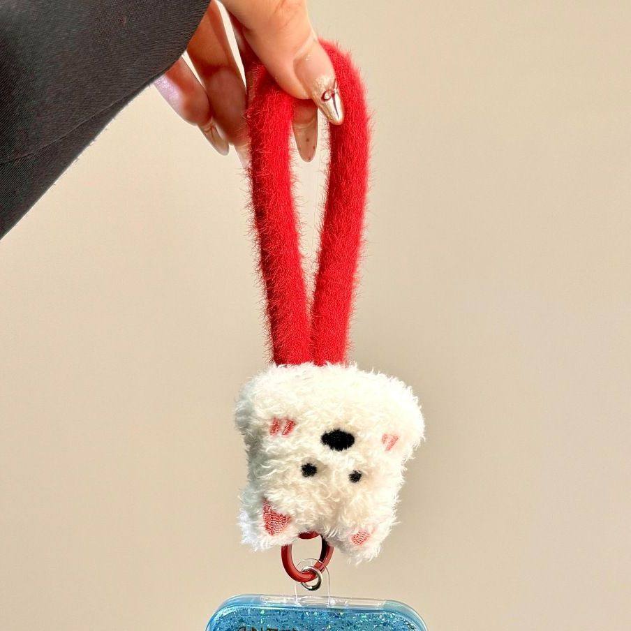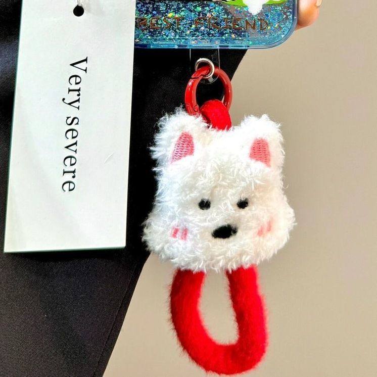 森系ins腮红西高地公仔短款手机挂绳耐用结实编织带挂链创意钥匙