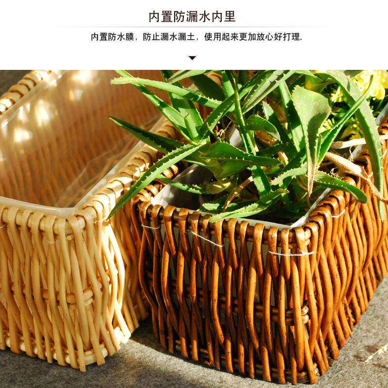 柳编花器装饰多肉栅栏花槽长方形大花盆绿植盆栽吊篮种植地面窗台