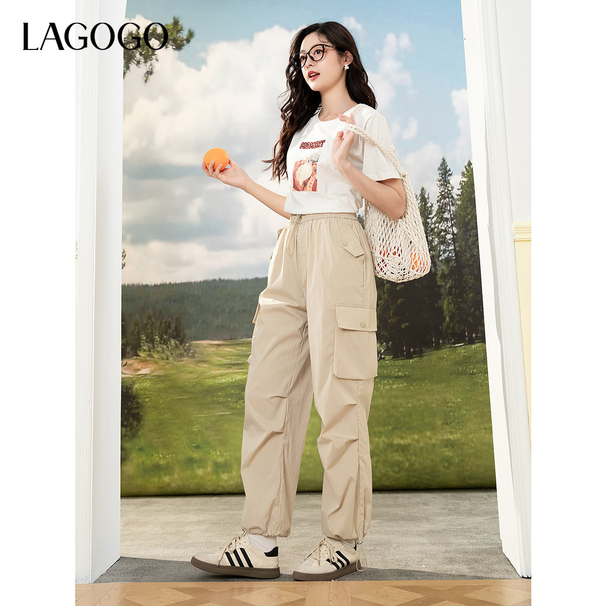 LAGOGO杏色直筒工装裤女拉谷谷2026年夏季新款防晒凉感速干长裤