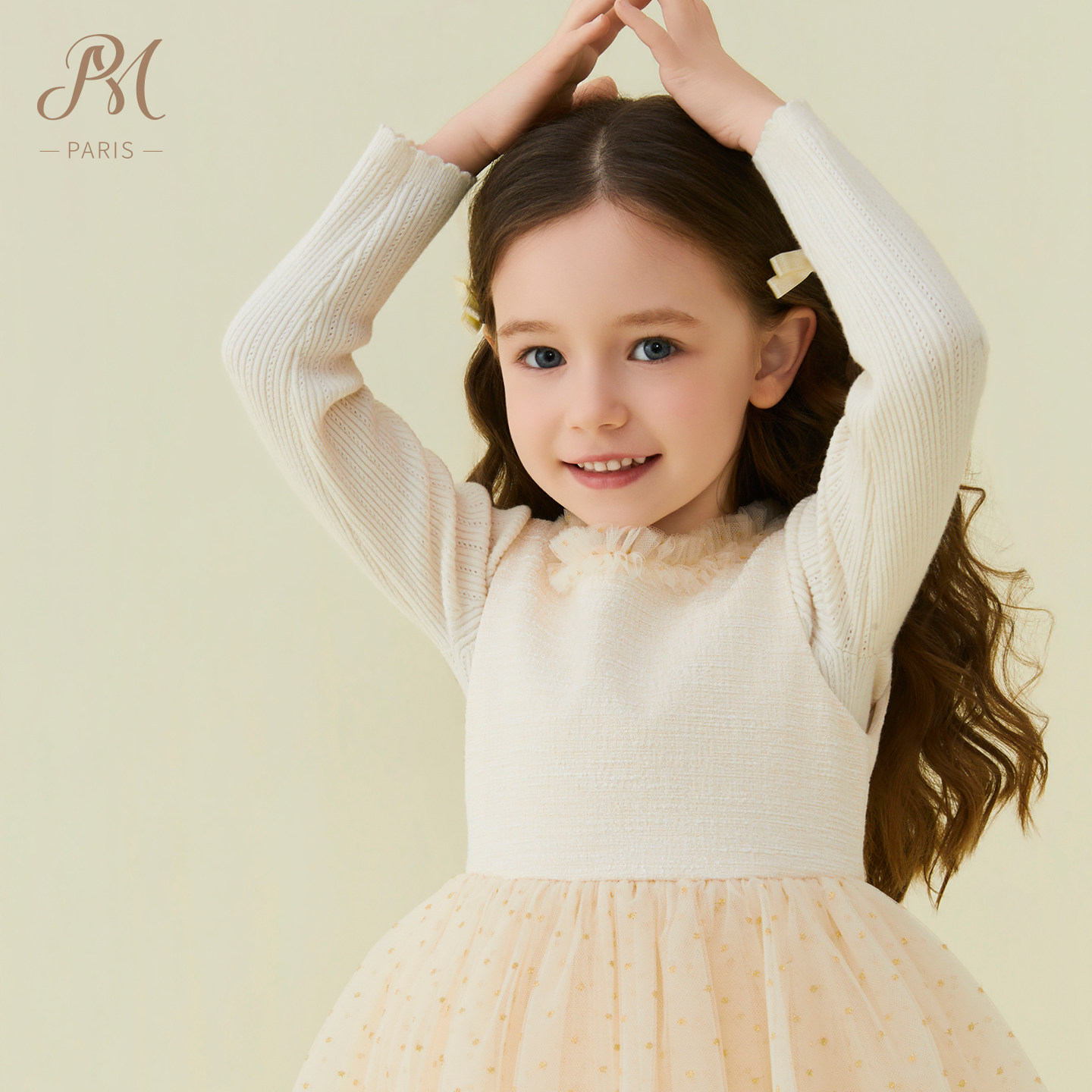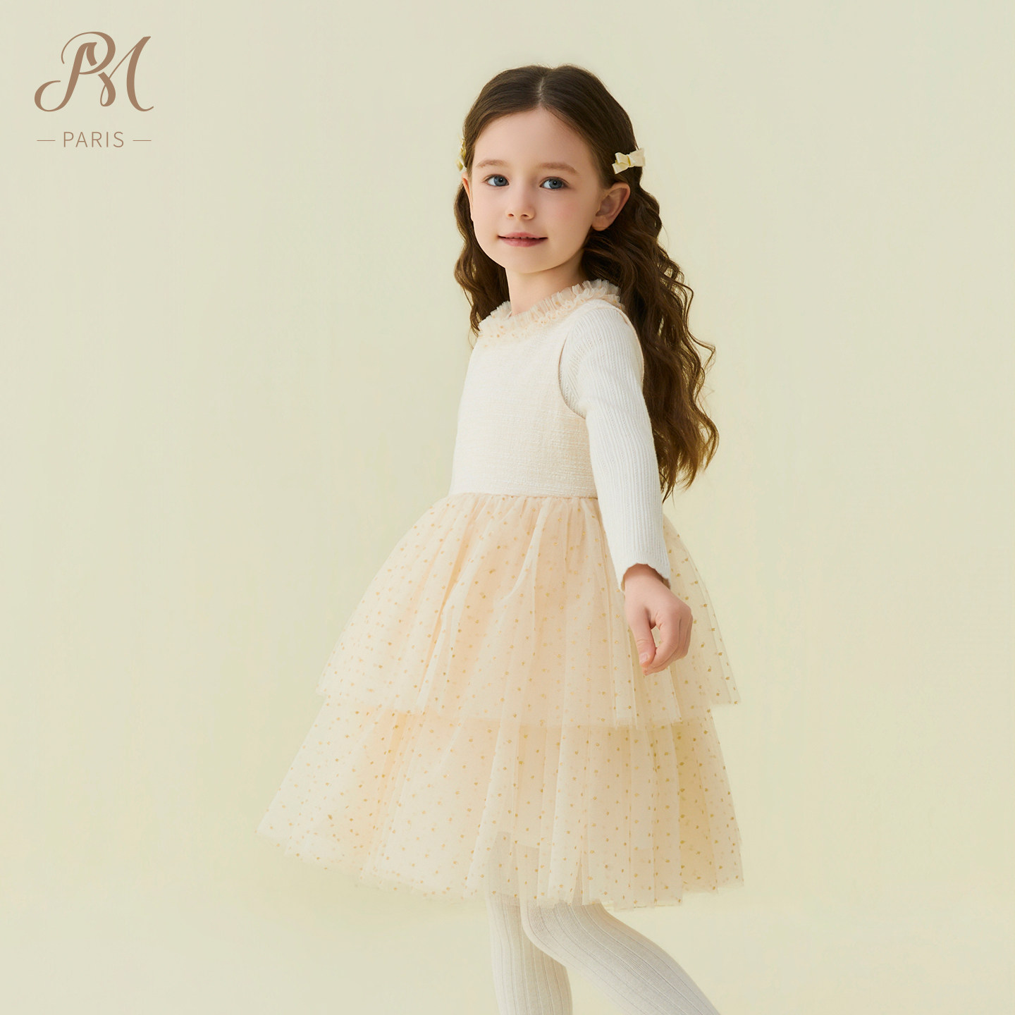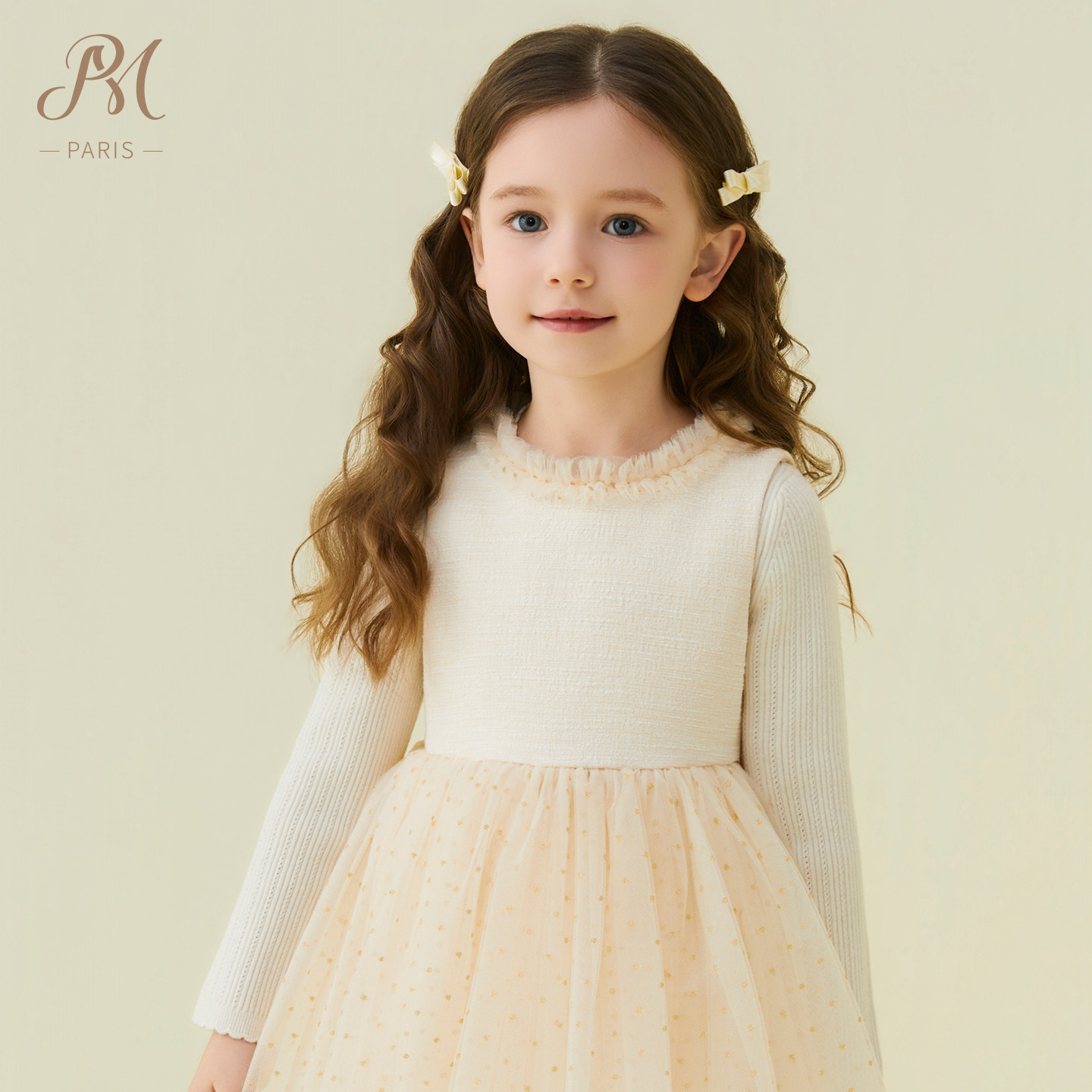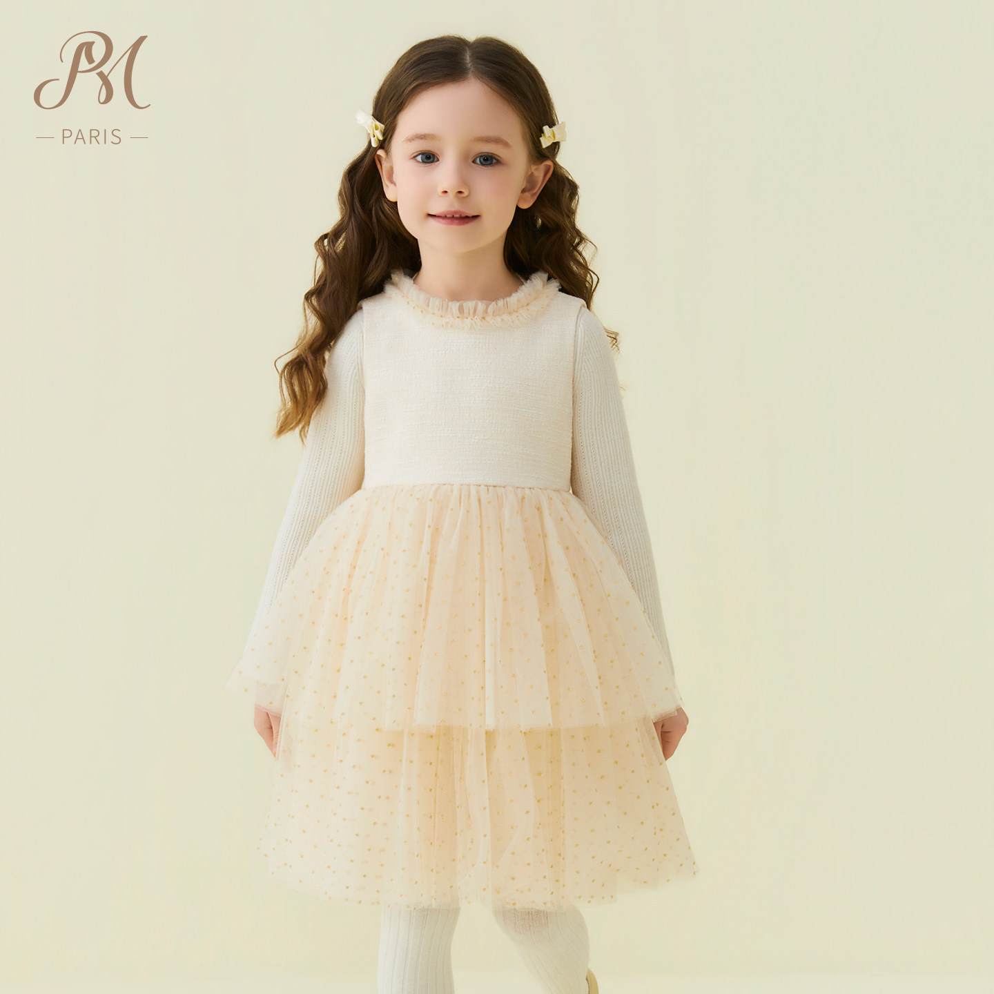 Petite Marguerite小雏菊童装·网纱花呢拼接连衣裙针织衫套装