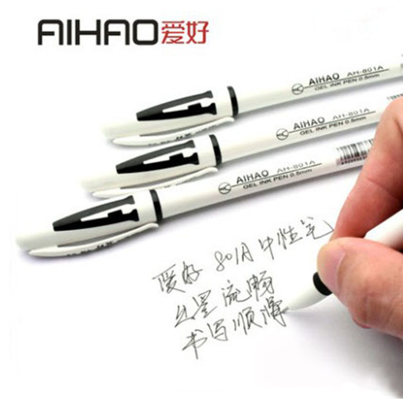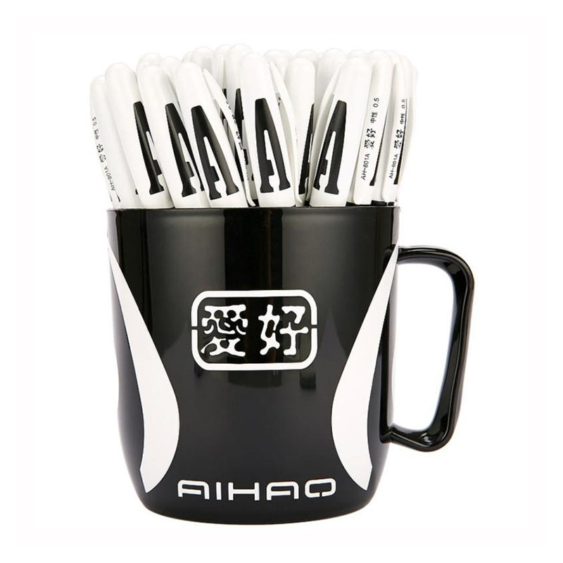 爱好801半针管中性笔水笔48只/桶办公舒适简约学生签字笔黑红蓝笔