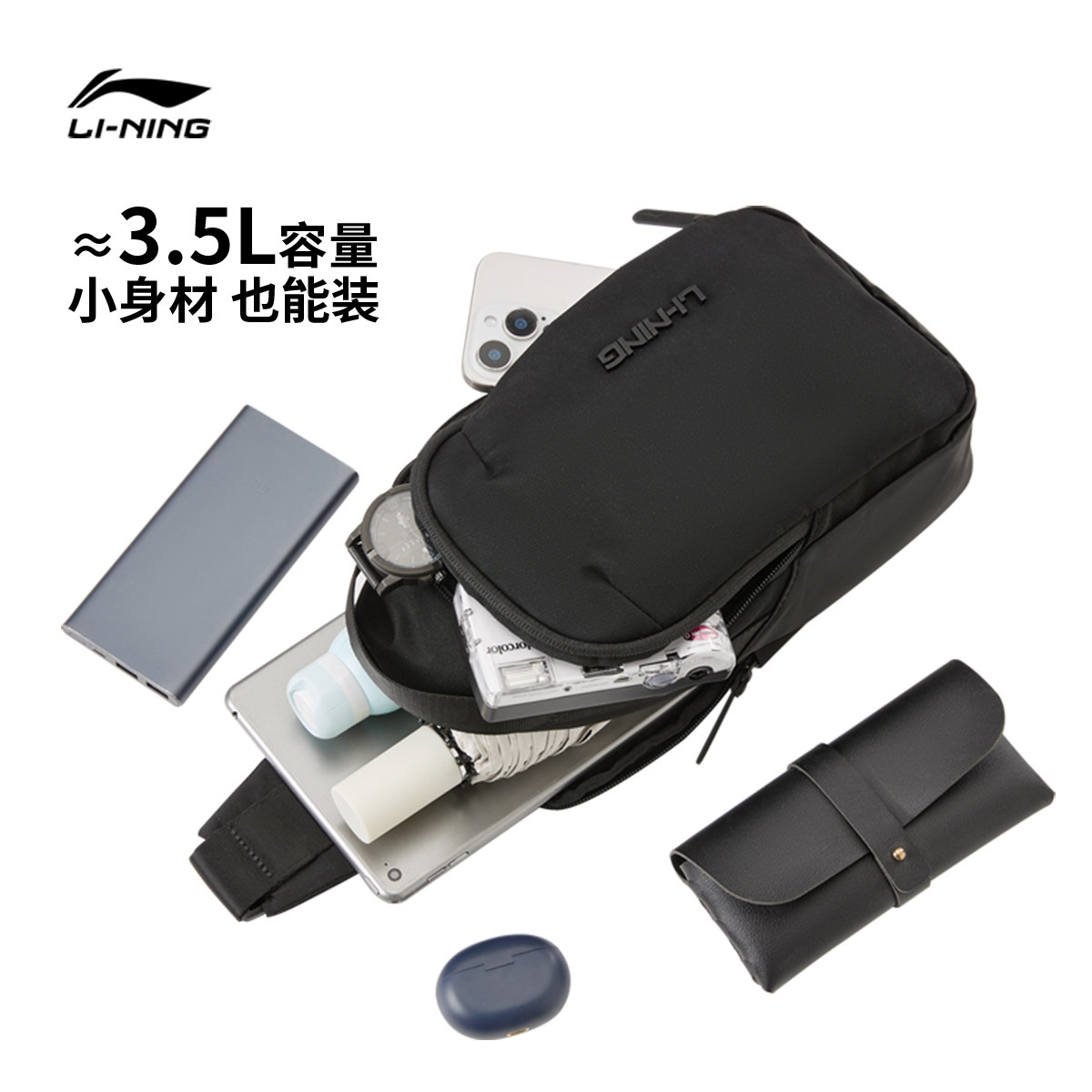 李宁斜挎包男士2026新款多功能休闲胸包实用多分区防泼水单肩包女
