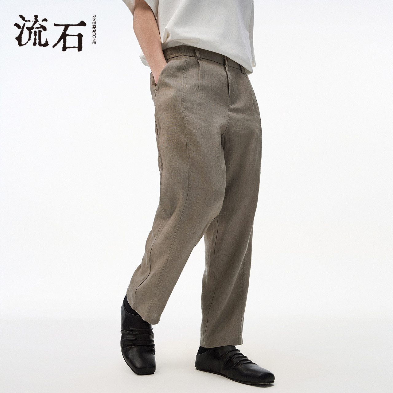 流石男装亚麻休闲九分裤子2026年夏季新款男士宽松简约透气直筒裤