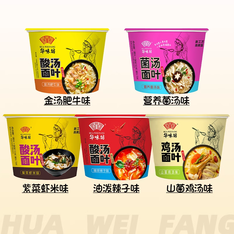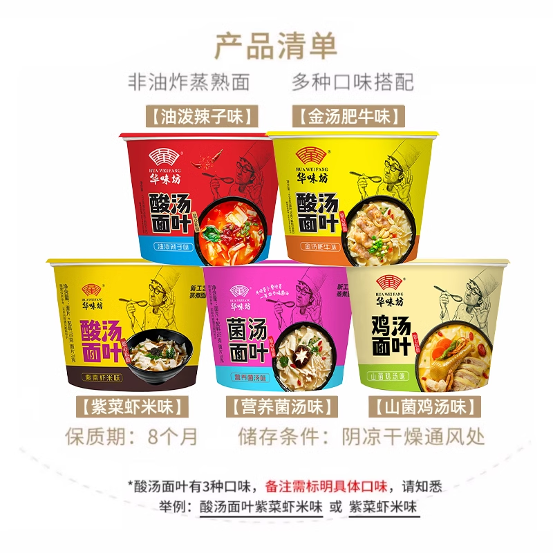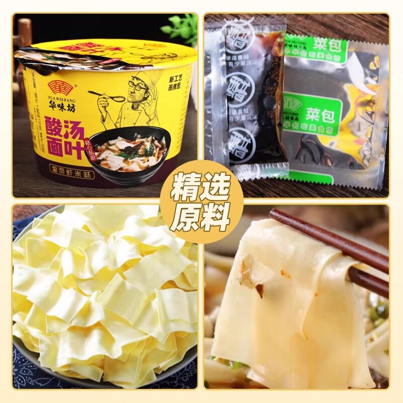 华味坊酸汤面叶桶装方便面紫菜虾米冲泡即食速食面片整箱面叶泡面