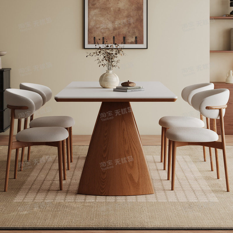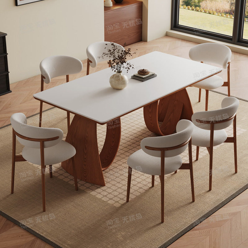 中古风实木岩板餐桌设计师小户型法式复古组合新款长方形饭桌子