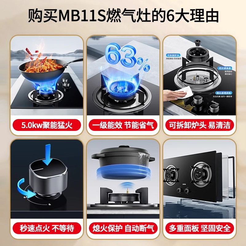 苏泊尔MB11S燃气灶具家用嵌入式台式液化气天然气台式猛火双灶台