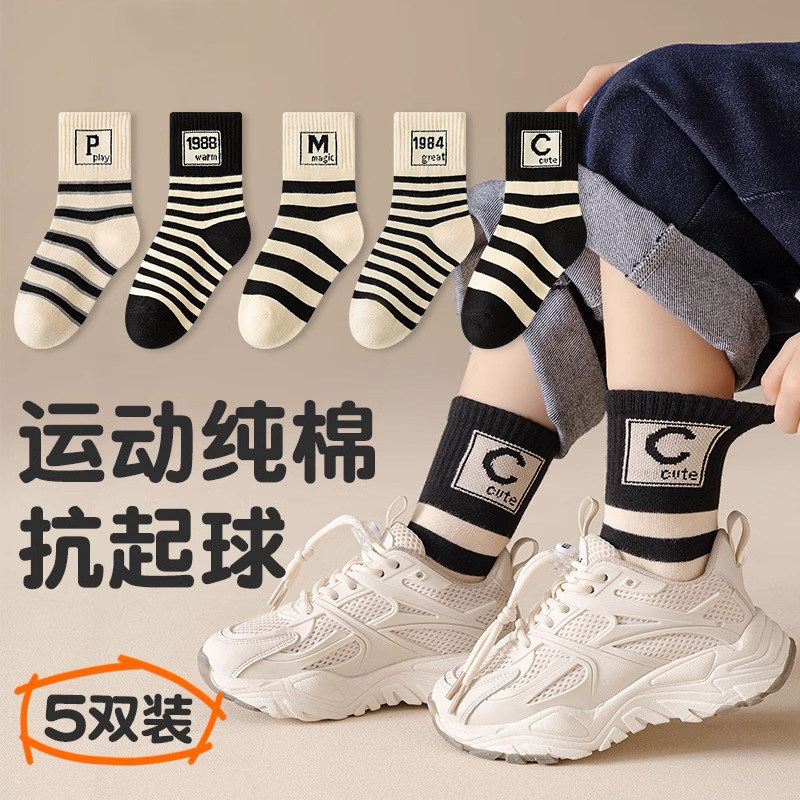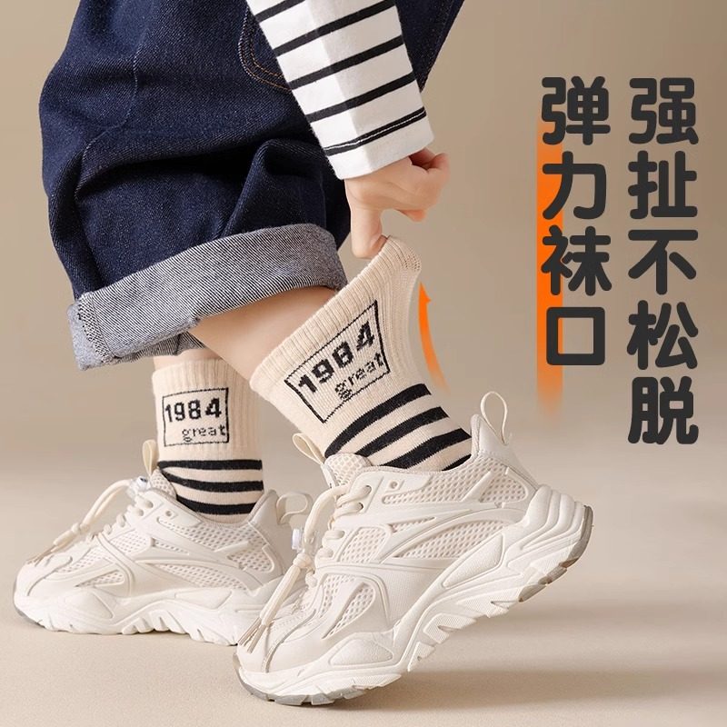 纯棉童袜春秋款夏季薄款防臭不起球男女袜子全棉中筒袜时尚儿童袜