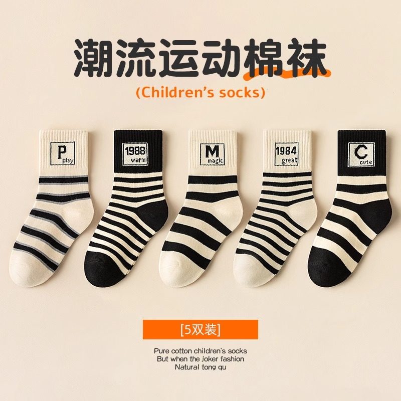 儿童袜子男童棉袜秋冬童袜中筒男孩宝宝秋季大童运动透气条纹新年