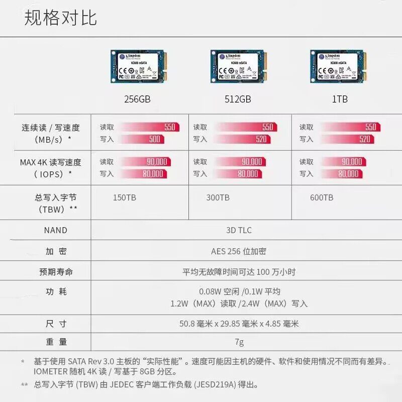 金士顿SKC600MS mSATA 256G 512G 1T固态硬盘企业工控机笔记本SSD